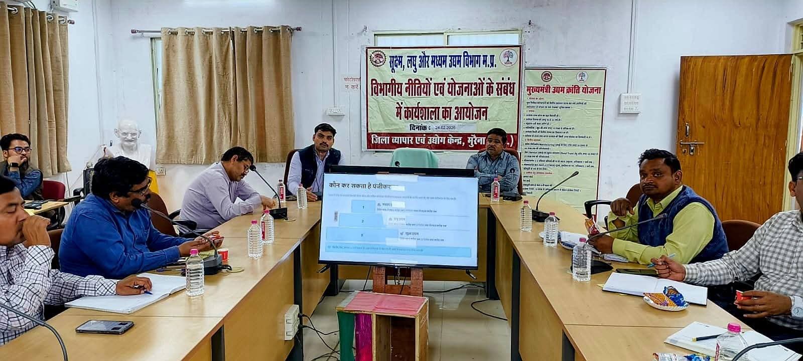 जिला पंचायत सभागार, मुरैना में मंगलवार को एमएसएमई विभाग एवं जिला पंचायत के मध्यप्रदेश डे-राष्ट्रीय ग्रामीण आजीविका मिशन (म.प्र.डे.रा.ग्रा.आ.मि.) के तत्वावधान में उद्यम पंजीयन विषयक कार्यशाला का आयोजन किया गया।