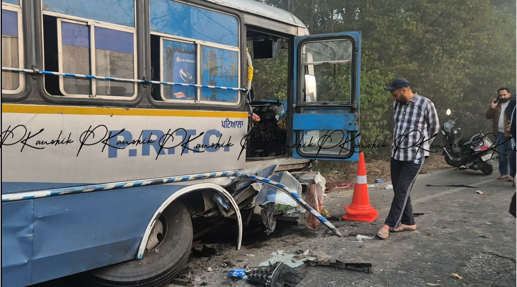 ਸਮਾਣਾ-ਪਟਿਆਲਾ ਸੜਕ ‘ਤੇ ਪੀਆਰਟੀਸੀ ਬੱਸ ਅਤੇ ਕਾਰ ਦੀ ਭਿਆਨਕ ਟੱਕਰ