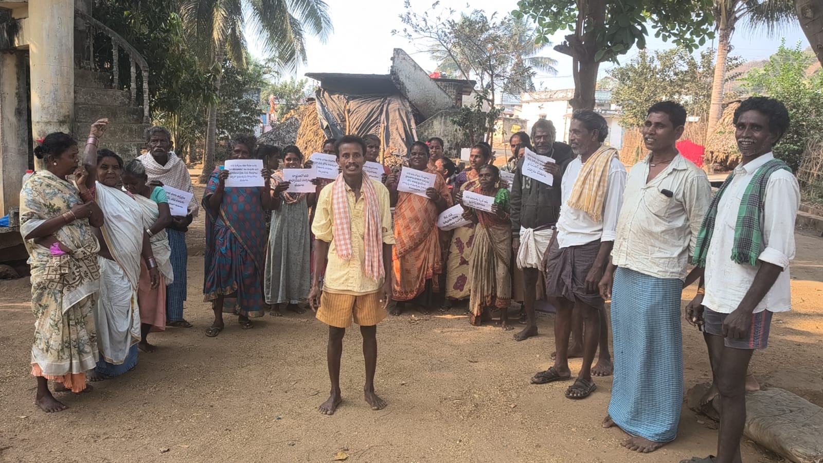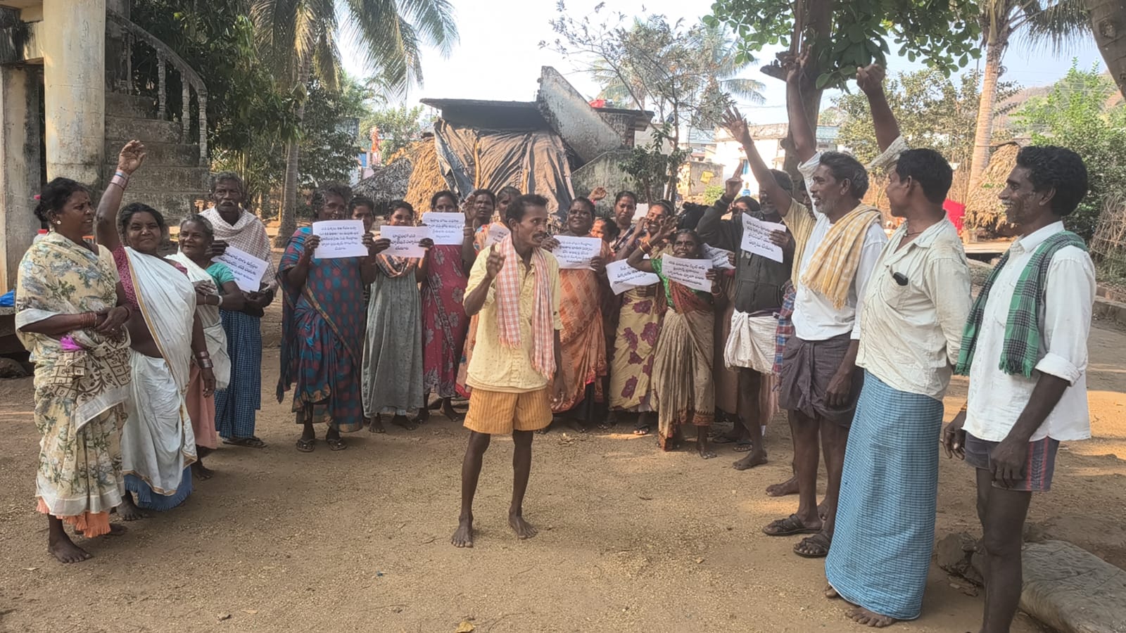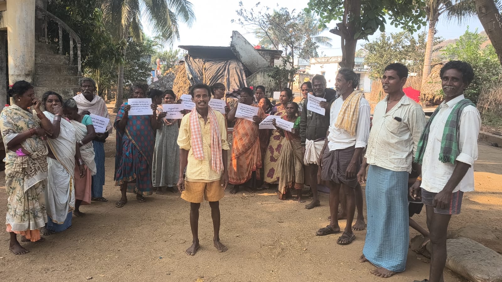 కొమ్మర్తి గ్రామంలో ప్లేకార్డ్ ధర్నాతో ముగిసిన జీడి రైతుల ఆందోళన