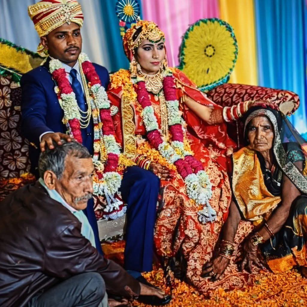 घोर कलयुग जहाँ शादी होने पर माँ बाप बहु और बेटे को आशीर्वाद देते है वही एक मामला उल्टा दिखा बहु और बेटा माँ बाप को आशीर्वाद दे रहे है ये तस्वीर आज के समाज की कहानी बया करती है