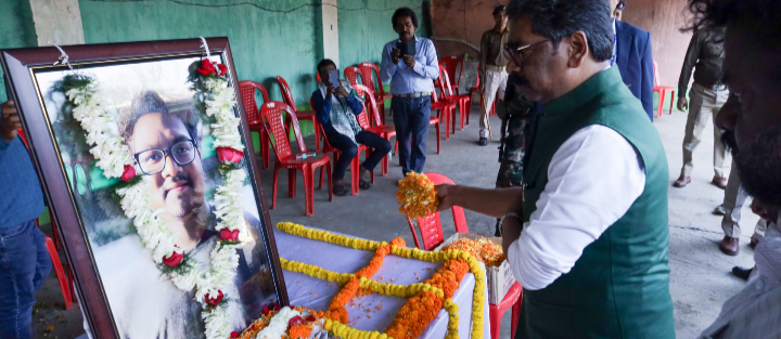 मुख्यमंत्री श्री हेमन्त सोरेन आज सरायकेला-खरसावां जिले के जिलिंगोड़ा पहुँचे, जहाँ उन्होंने पूर्व मुख्यमंत्री श्री चंपई सोरेन के पोते, वीर सोरेन, के असामयिक निधन पर गहरी शोक-संवेदना व्यक्त की। दिवंगत वीर सोरेन, श्री बाबूलाल सोरेन के ज्येष्ठ पुत्र थे। मुख्यमंत्री ने दिवंगत वीर सोरेन के पार्थिव शरीर पर पुष्पचक्र अर्पित कर उन्हें श्रद्धांजलि दी तथा शोकाकुल परिवार के प्रति अपनी गहरी संवेदनाएँ प्रकट कीं।