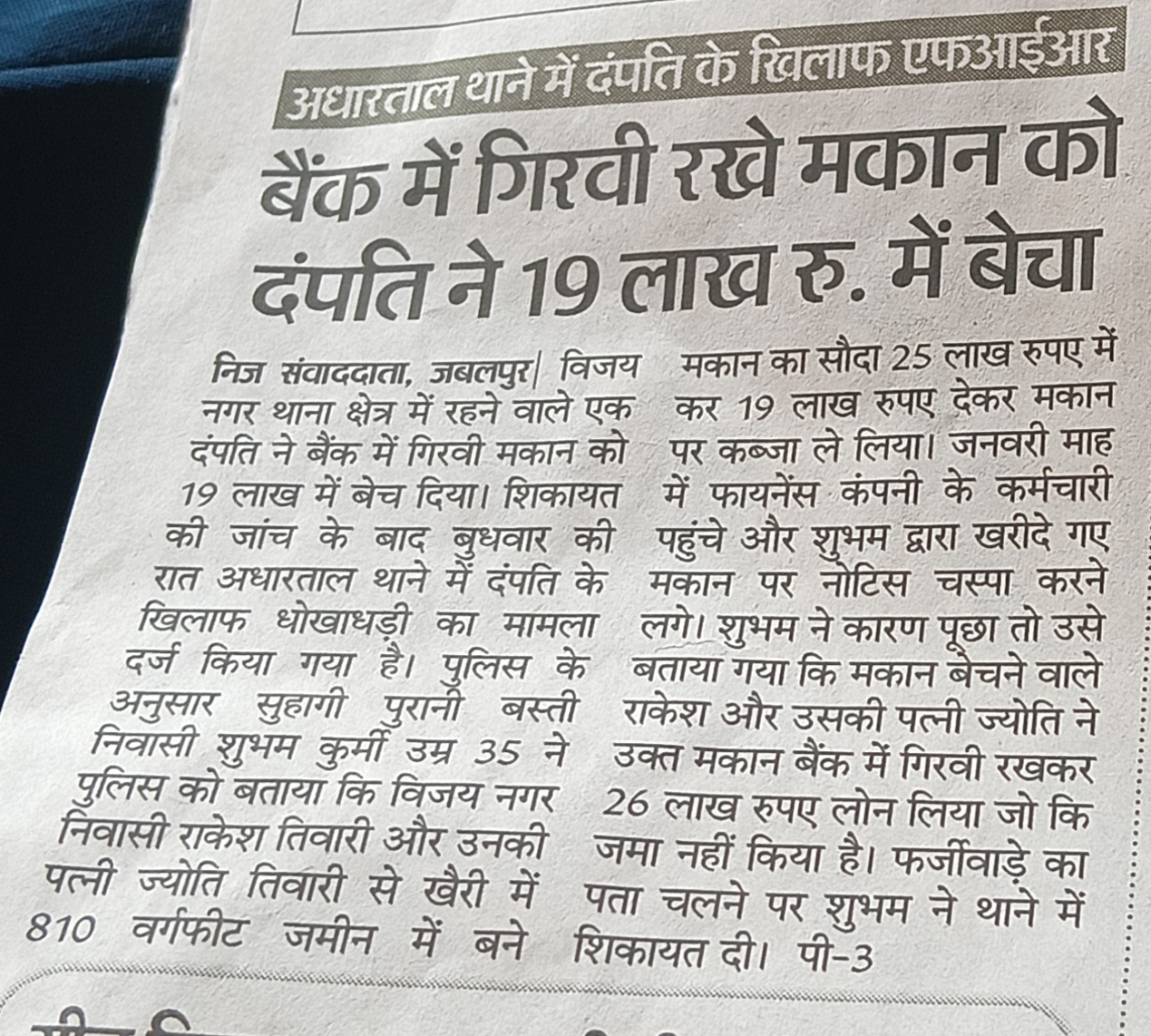 बैंक में गिरवी रखे मकान को दंपति ने 19लाख रूपये में बेचा