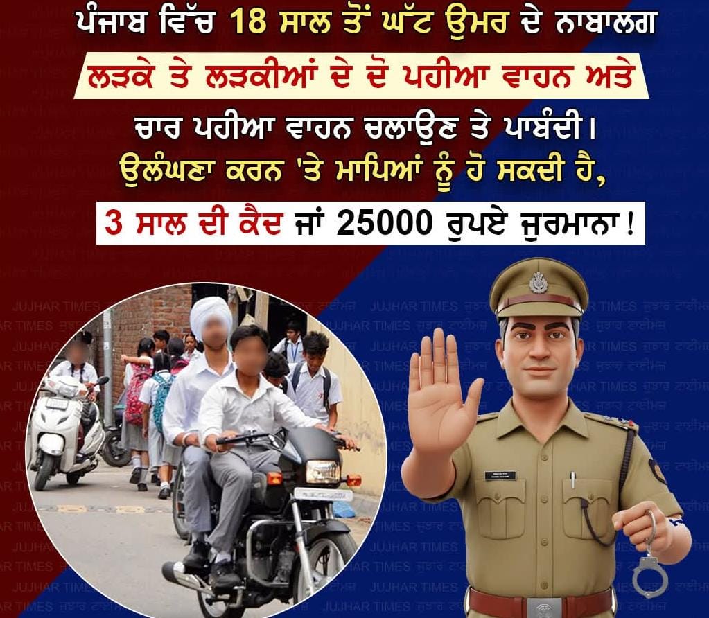 ਪੰਜਾਬ ਵਿੱਚ ਬੱਚਿਆ ਲਈ ਸਖ਼ਤ ਟ੍ਰੈਫਿਕ ਨਿਯਮ ਜਾਰੀ! ਉਲੰਘਣਾ ਕਰਨ ਤੇ ਮਾਪਿਆ ਨੂੰ ਵੀ ਹੋ ਸਕਦੀ ਸਜਾ!