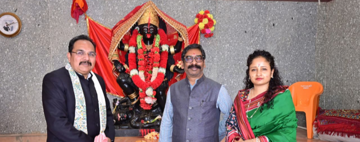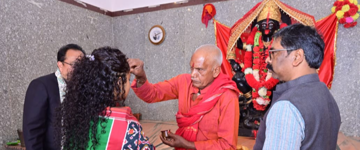मुख्यमंत्री ने बोहरा के काली मंदिर में की पूजा-अर्चना, संग रहीं विधायक कल्पना सोरेन