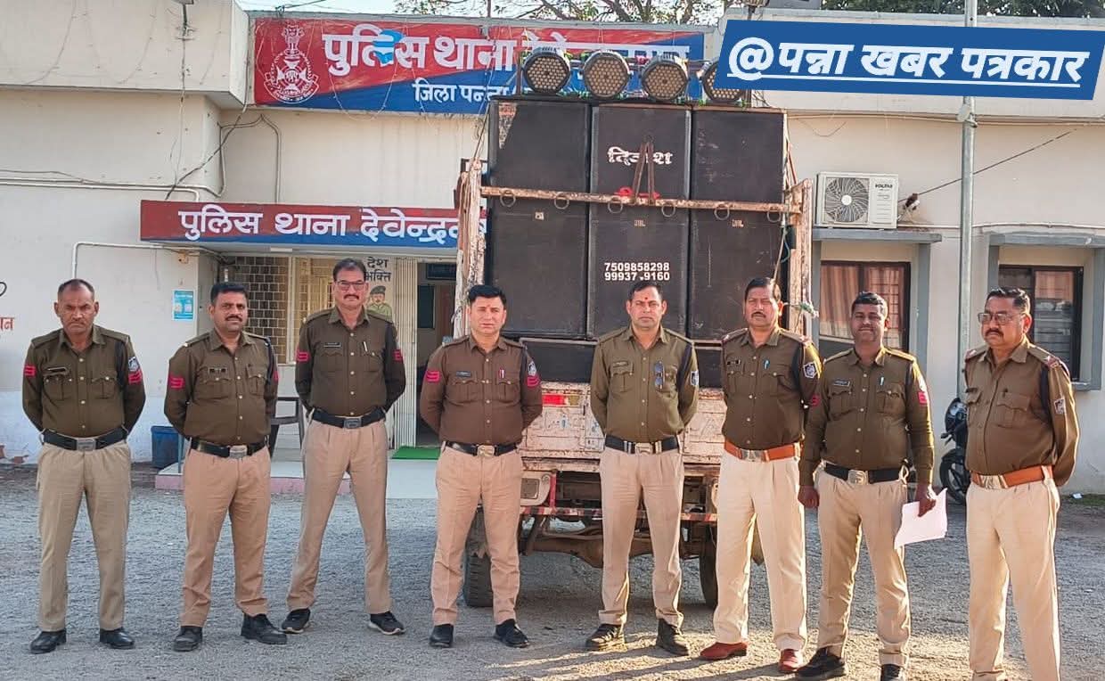 देवेंद्रनगर थाना क्षेत्र में बोर्ड परीक्षाओं के दौरान निर्धारित समय-सीमा के बाहर अवैध डी.जे. संचालन पर पन्ना पुलिस की सख्त कार्यवाही कोलाहल नियंत्रण अधिनियम के उल्लंघन पर आरोपी के विरुद्ध अपराध दर्ज, लगभग ₹10 लाख का मशरूका जप्त।।