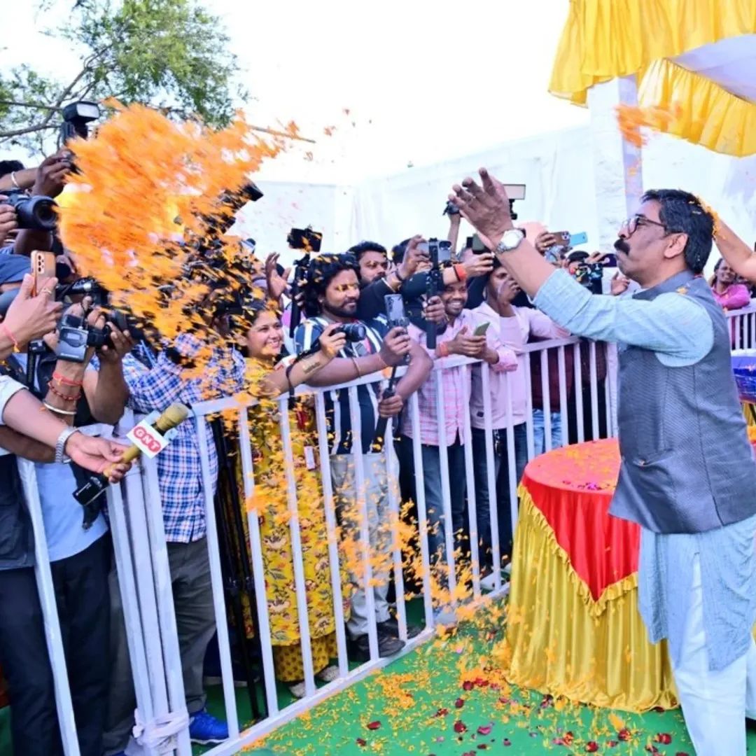 рд╕рдорд╛рд░реЛрд╣ рдХреА рдЧрд░рд┐рдорд╛ рдЙрд╕ рд╕рдордп рдФрд░ рдмрдврд╝ рдЧрдИ рдЬрдм рд░рд╛рдЬреНрдп рдХреЗ рдорд╛рдирдиреАрдп рдореБрдЦреНрдпрдордВрддреНрд░реА рд╣реЗрдордВрдд рд╕реЛрд░реЗрди рдХреА рдЧрд░рд┐рдорд╛рдордпреА рдЙрдкрд╕реНрдерд┐рддрд┐ рд░рд╣реАред рдХрд╛рд░реНрдпрдХреНрд░рдо рдХреЗ рджреМрд░рд╛рди рдЬрдирдкреНрд░рддрд┐рдирд┐рдзрд┐рдпреЛрдВ рдиреЗ рдПрдХ-рджреВрд╕рд░реЗ рдХреЛ рдЕрдмреАрд░-рдЧреБрд▓рд╛рд▓ рд▓рдЧрд╛рдХрд░ рд╣реЛрд▓реА рдХреА рд╢реБрднрдХрд╛рдордирд╛рдПрдВ рджреАрдВ рддрдерд╛ рд╕рд╛рдорд╛рдЬрд┐рдХ рд╕рджреНрднрд╛рд╡ рдФрд░ рднрд╛рдИрдЪрд╛рд░реЗ рдХрд╛ рд╕рдВрджреЗрд╢ рджрд┐рдпрд╛ред