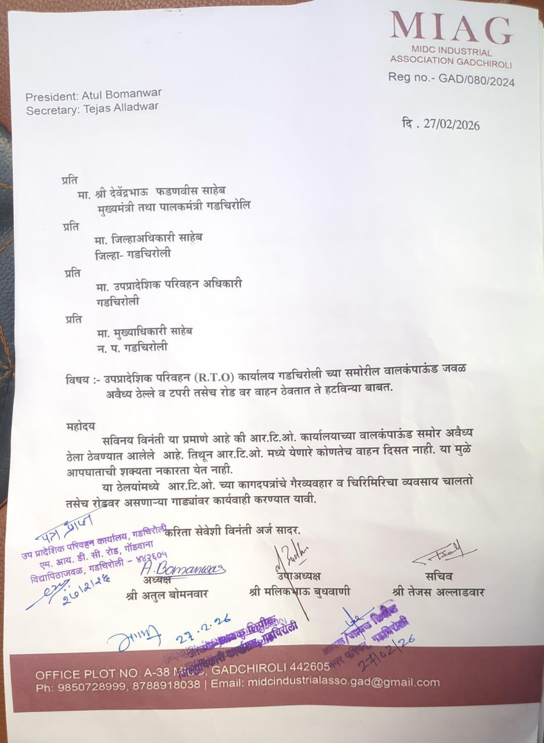 ЁЯУЭ рдмрд╛рдпрдкрд╛рд╕ рд░реЛрдб рдкрд░ рдЕрд╡реИрдз рдХрдмреНрдЬрд╛, MIDC рдХреЗ рдЙрджреНрдпреЛрдЧрдкрддрд┐рдпреЛрдВ рдореЗрдВ рдирд╛рд░рд╛рдЬрд╝рдЧреА рдЧрдбрд╝рдЪрд┐рд░реЛрд▓реА, рджрд┐рдирд╛рдВрдХ 27 рдлрд░рд╡рд░реА 2026: