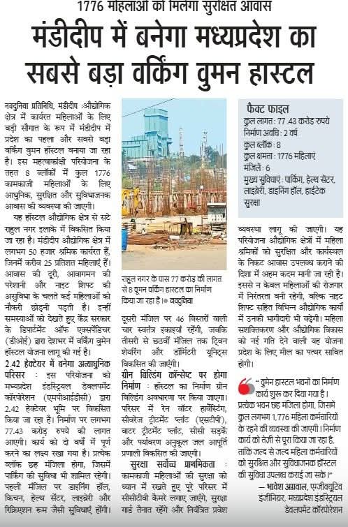 मंडीदीप में बनेगा मध्यप्रदेश का सबसे बड़ा वर्किंग वुमन हॉस्टल