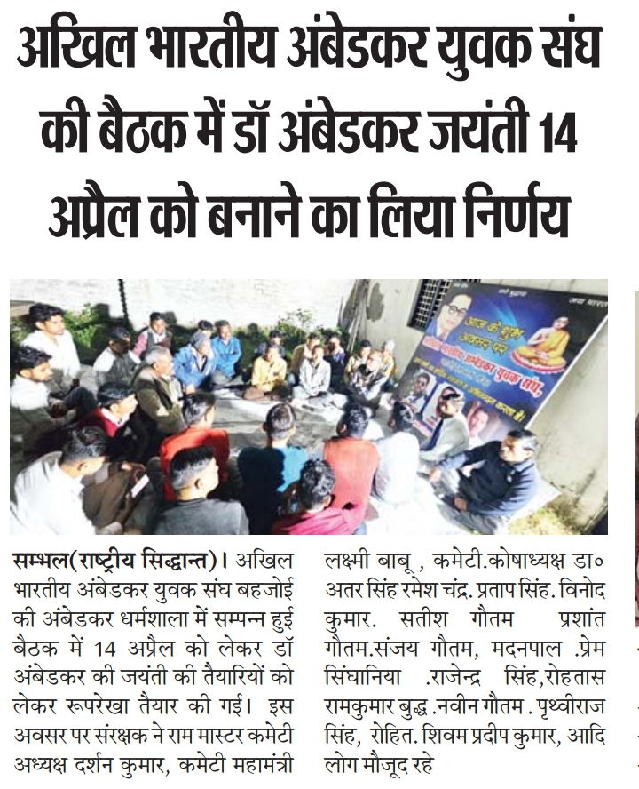 आगामी 14 अप्रैल अंबेडकर जयंती तैयारी को लेकर की गई मीटिंग