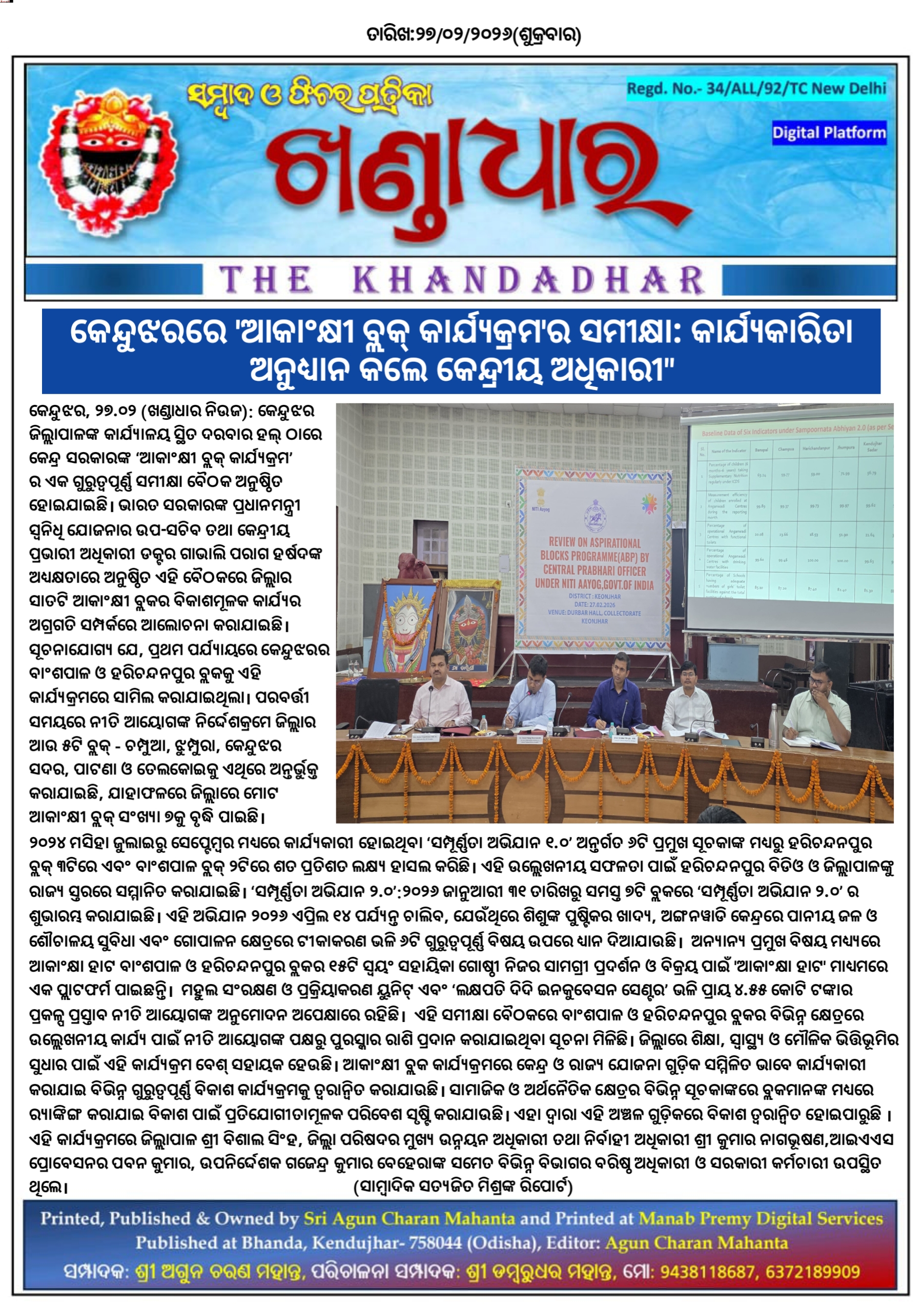 କେନ୍ଦୁଝରରେ 'ଆକାଂକ୍ଷୀ ବ୍ଲକ୍ କାର୍ଯ୍ୟକ୍ରମ'ର ସମୀକ୍ଷା: କାର୍ଯ୍ୟକାରିତା ଅନୁଧ୍ୟାନ କଲେ କେନ୍ଦ୍ରୀୟ ଅଧିକାରୀ"।