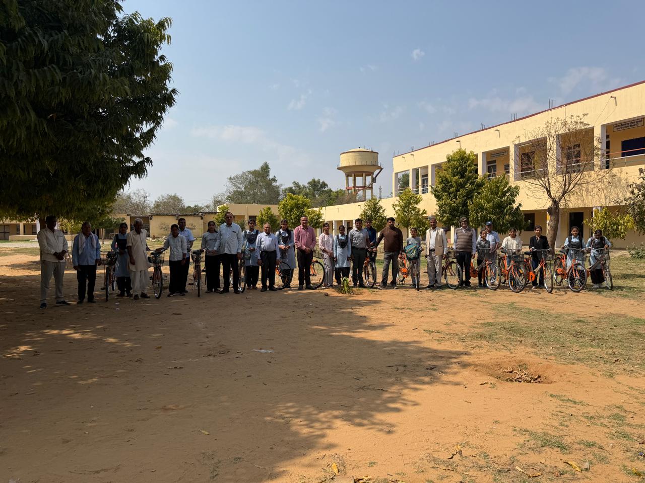 राजकीय उच्च माध्यमिक विद्यालय राडा वास में 21 छात्राओं को साइकिल वितरित की गई। श्रीमान प्रधानाचार्य बाबूलाल जाट द्वारा गण माननीय नागरिकों एवं विद्यालय प्रबंध समिति के सदस्यों की उपस्थिति में साइकिल वितरित की गई। साइकिल वितरण प्रभारी श्री मुकेश जाट ने बताया की अधिक दूरी से आने वाली छात्राओं को साइकिल वितरित की गई है। कक्षा अध्यापिका श्रीमती कुसुम चौहान ने भी छात्राओं को बताया कि यातायात नियमों की पालना करते हुए साइकिल का उपयोग किया जाए। इस अवसर पर श्री हनुमान सिंह शेखावत, श्री ग्यारसी लाल बराला, श्री घनश्याम मिश्रा, श्री सुरेश कुमार मीणा, श्री प्रभु दयाल निठारवाल, एवं विद्यालय स्टाफ उपस्थित रहे।