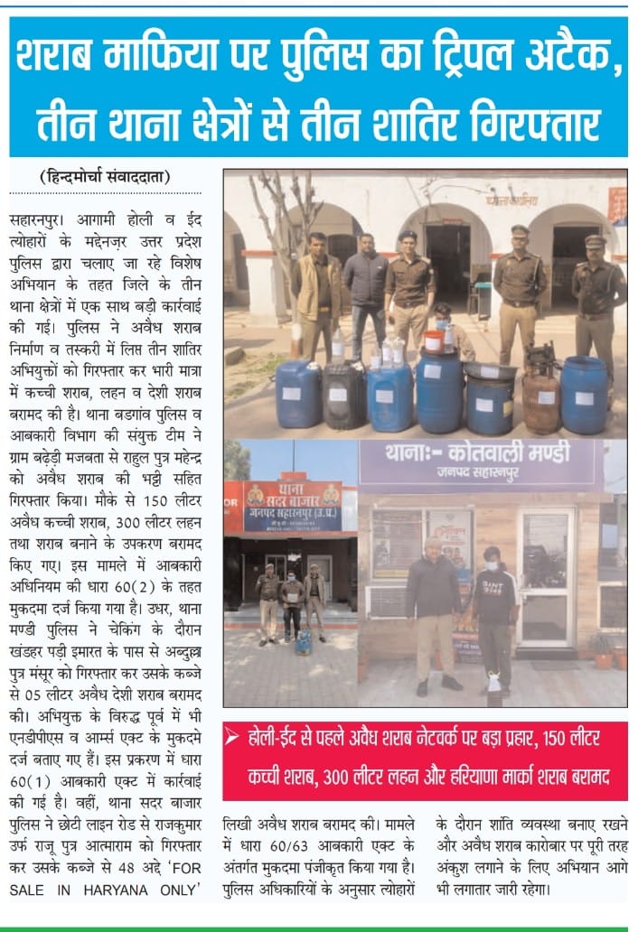 शराब माफिया पर पुलिस का ट्रिपल अटैक, तीन थाना क्षेत्रों से तीन शातिर गिरफ्तार