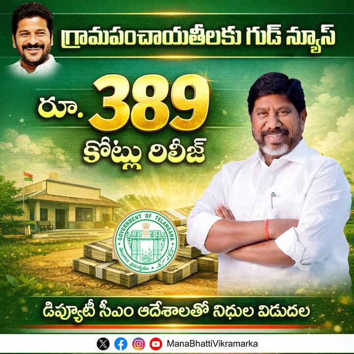 తెలంగాణ రాష్ట్ర గ్రామ పంచాయతీలకు ₹ 389 కోట్ల రూపాయలు విడుదల *రాష్ట్రఉపముఖ్యమంత్రి మల్లు భట్టి విక్రమార్క,