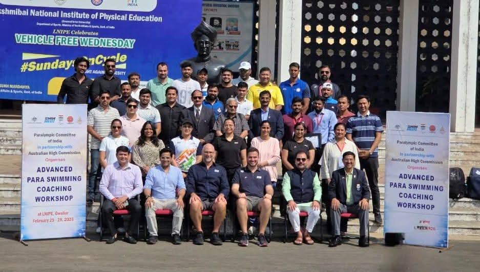 Successfully attended ADVANCED PARA SWIMMING COACHING WORK SHOP ORGANIZED BY Paralympic committee of India And Australian High commission at LNIPE GWALIOR FROM 25TH TO 28th February, Two ADVANCED Paralympic Coaches ,Olympian Martin Roborts and Nathan Dayle Taught some very fine ways to teach, trained both physical, psychological aspects to trained para swimmers for National and international competitions, it was very nice experience for all all us ,33 coaches from all all over India attended this swimmers work shop ,Mr Virender Kumar Dabas Chairman PCIand ,Mr Manish Rana helped a lot to make this work shop a great success