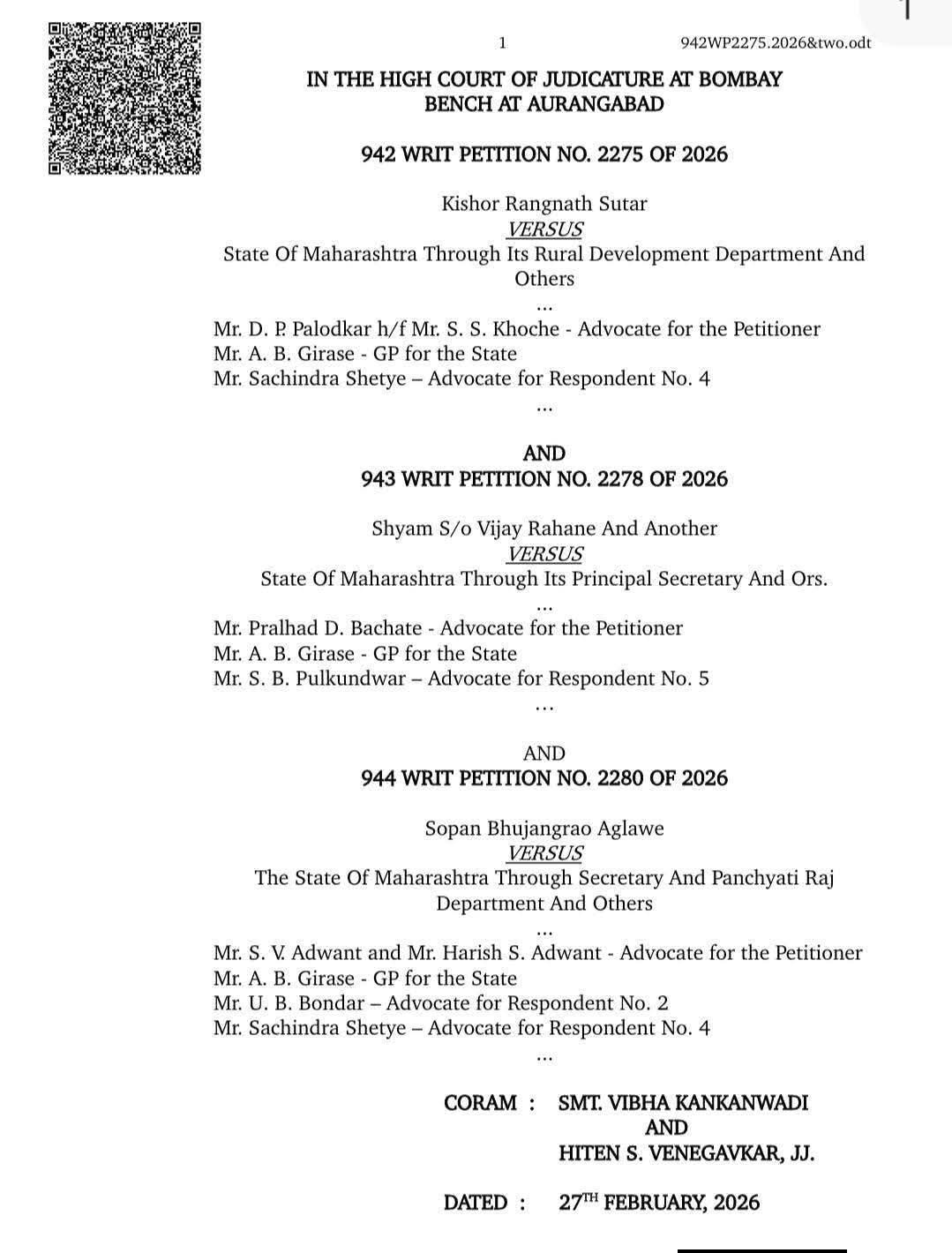 मा.उच्च न्यायालय औरंगाबाद खंडपीठाने जिल्हा परिषद अहिल्यानगर व जिल्हा परिषद छत्रपती संभाजीनगर येथील ग्रामपंचायतीमध्ये सरपंच यांना प्रशासक नियुक्तीस ...
