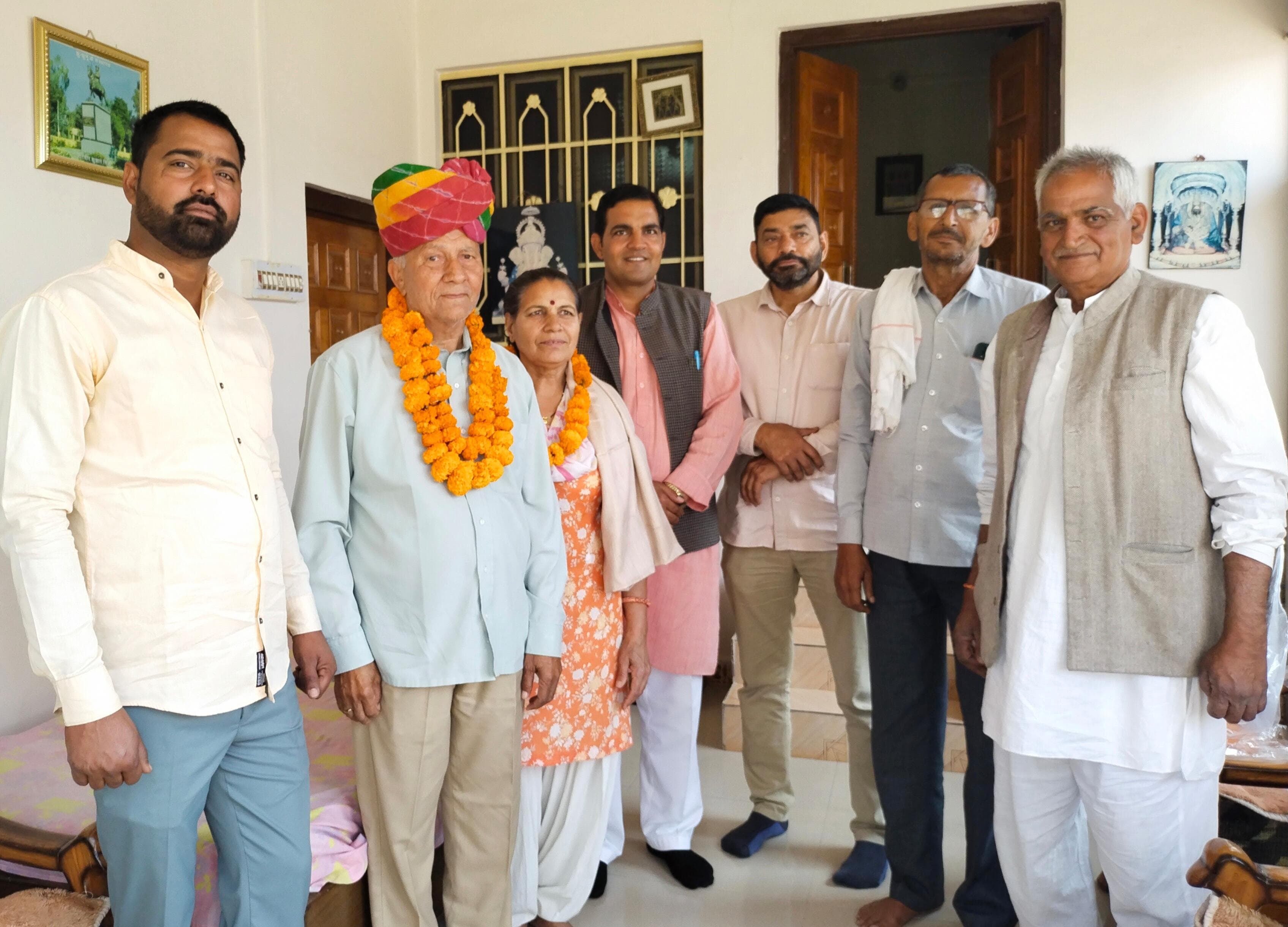 (गुढ़ा) ऊबली बालाजी के निकटवर्ती गांव बजावा रावत का में राष्ट्रीय जाट महासंघ के पदाधिकारियों की मौजूदगी में निर्माणाधीन तेजाजी मंदिर क्यामसर के निर्माण में सहयोग के तौर पर आरबीआई से सेवानिवृत्त ताराचंद चौधरी एवं सावित्री चौधरी ने 51 हजार रुपये नकद व निर्माण सामग्री देने की घोषणा करने पर संगठन के पदाधिकारियों द्वारा सॉल साफा एवं फूल माला पहनाकर के स्वागत किया गया। राष्ट्रीय जाट महासंघ के गुढा ब्लॉक अध्यक्ष कैप्टन सतबीर मूंड, महासचिव सूबे. प्रताप सिंह, उपाध्यक्ष रामदेव सिंह मूंड एवं युवा तेजा सेना ब्लॉक अध्यक्ष प्रवीण मूंड ने सोल साफा व फूलमाला पहनाकर के स्वागत किया। राष्ट्रीय जाट महासंघ के प्रदेश अध्यक्ष डॉ. विरेन्द्र क्यामसरिया ने बताया कि जनसहयोग से बनने वाले 165 फीट ऊंची शिखर के भारत के सबसे बड़े तेजाजी मंदिर के निर्माण में सभी का तन मन धन से सहयोग मिल रहा हैं।