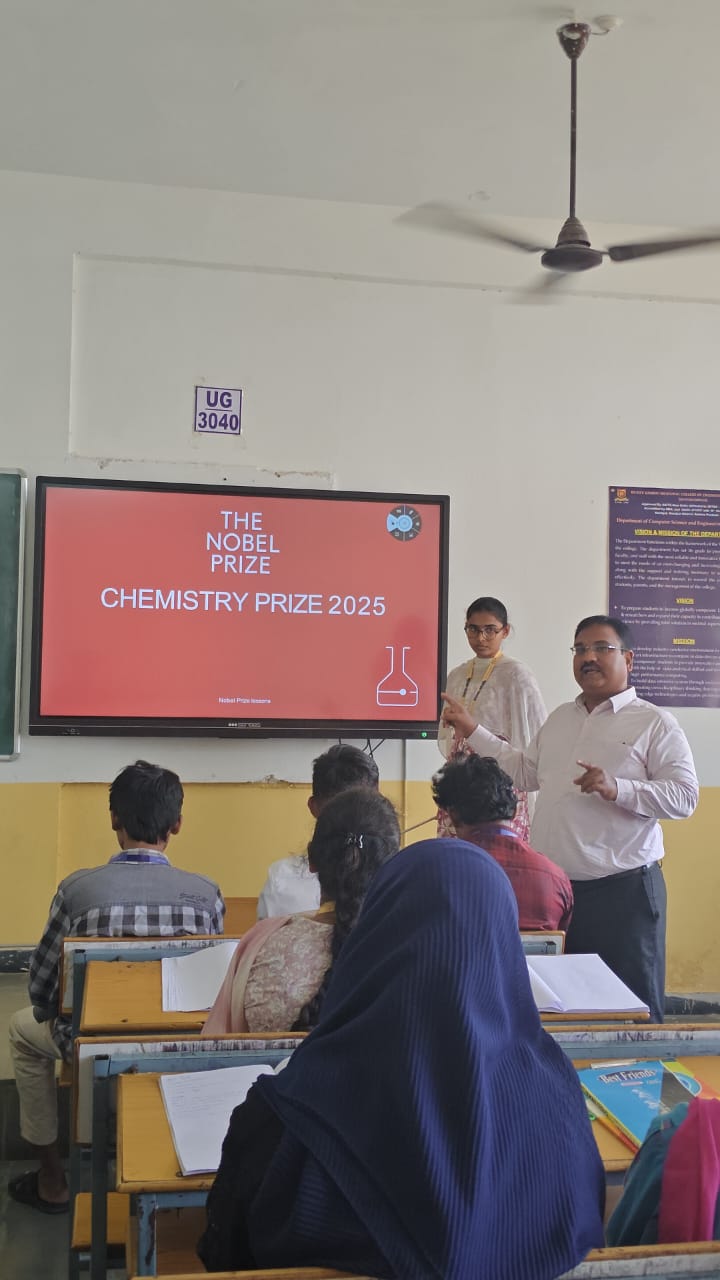 పాణ్యం (AIMA MEDIA): ఆర్.జి.యం ఇంజనీరింగ్ కాలేజ్ లో జాతీయ సైన్స్ దినోత్సవం 2026 ను శనివారం ఘనంగా నిర్వహించారు. ఇందులో భాగంగా విద్యార్థులకు ప్రస్తుత సైన్స్ రంగంలో జరుగుతున్న వివిధ అంశాల పై (క్వాంటం టెక్నాలజీ, ఆర్టిఫీషియల్ ఇంటెల్జెన్సీ) సెమినార్స్ నిర్వహించారు. మానవాళి కి ఉపయోగపడే సైన్స్ అంశాలు వాటి అవశ్యకత గురించి అధ్యాపకులు మరియు విద్యార్థులు ప్రసంగించారు.నేషనల్ సైన్స్ డే వేడుకల భాగంగా కెమిస్ట్రీ విభాగం 2025 నోబెల్ బహుమతి గ్రహీతలపై ఒక అకాడెమిక్ ప్రజెంటేషన్‌ను నిర్వహించారు. విద్యార్థులు నోబెల్ కమిటీ గుర్తించిన ప్రధాన శాస్త్రీయ కృషిని హైలైట్ చేస్తూ సమాచారభరితమైన పవర్‌పాయింట్ ప్రజెంటేషన్‌ను అందించారు. ఈ కార్యక్రమం ఇటీవలి శాస్త్రీయ పురోగతులపై అవగాహన కల్పించడం మరియు విద్యార్థుల్లో పరిశోధనపై ఆసక్తిని ప్రేరేపించడం లక్ష్యంగా పెట్టుకుంది. అధ్యాపకులు ఈ కార్యక్రమాన్ని అభినందించి, విజ్ఞాన శాస్త్రంలో ప్రపంచవ్యాప్తంగా జరుగుతున్న అభివృద్ధులతో నిరంతరం అనుసంధానంగా ఉండాలని పాల్గొనేవారిని ప్రోత్సహించారు.ఈ కార్యక్రమాన్ని విభాగాధిపతి డా. ఎ. బాలకృష్ణ మరియు విభాగ సిబ్బంది సభ్యులు నిర్వహించారు.