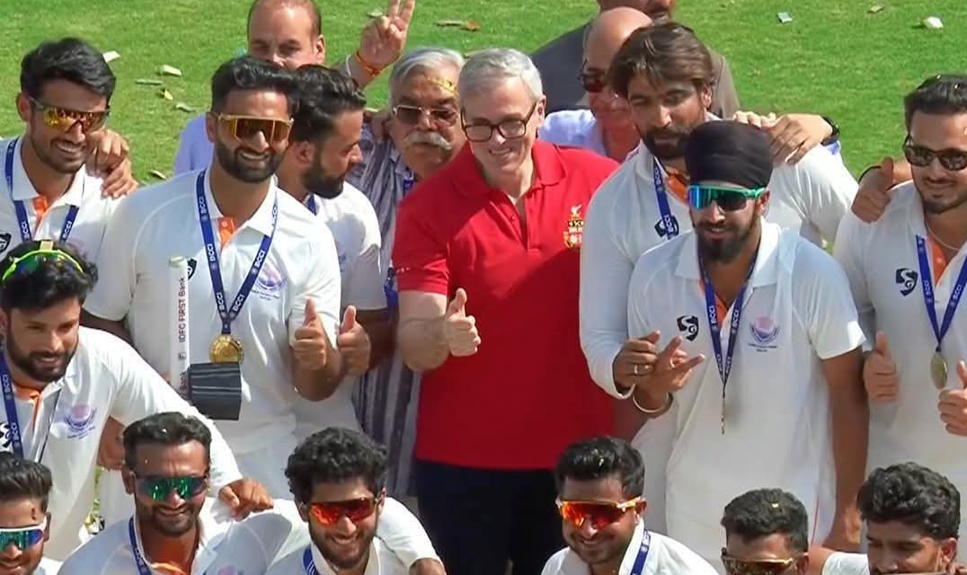 CM J&K UT Omar Abdullah Cheering with the winning team J&K