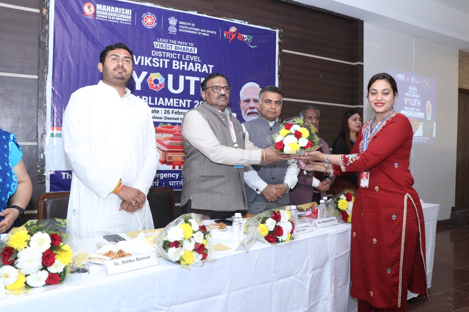 मुल्लाना अंबाला। 26 महर्षि मारकंडेश्वर डीम्ड टू बी यूनिवर्सिटी, मुलाना में राष्ट्रीय सेवा योजना एवं माय भारत, अंबाला के सहयोग से “विकसित भारत युवा संसद” का जिला स्तरीय आयोजन “Viksit Bharat Youth Connect” पहल के अंतर्गत सफलतापूर्वक किया। इस कार्यक्रम का उद्देश्य युवाओं में लोकतांत्रिक चेतना, संवैधानिक मूल्यों और नागरिक जिम्मेदारियों को सशक्त करना रहा।