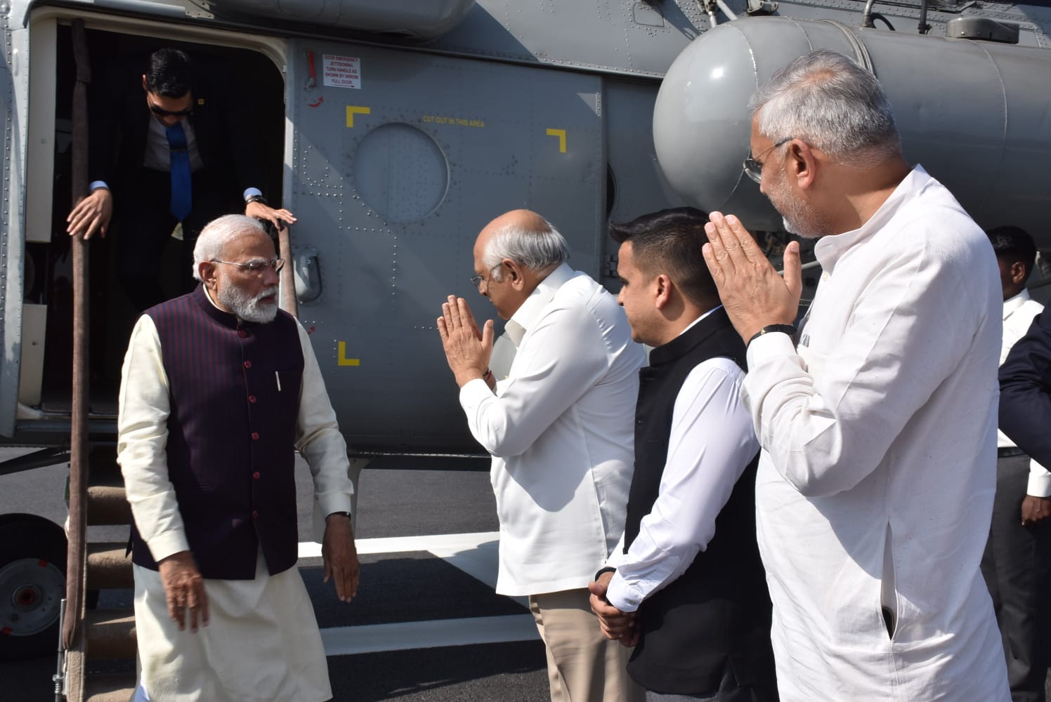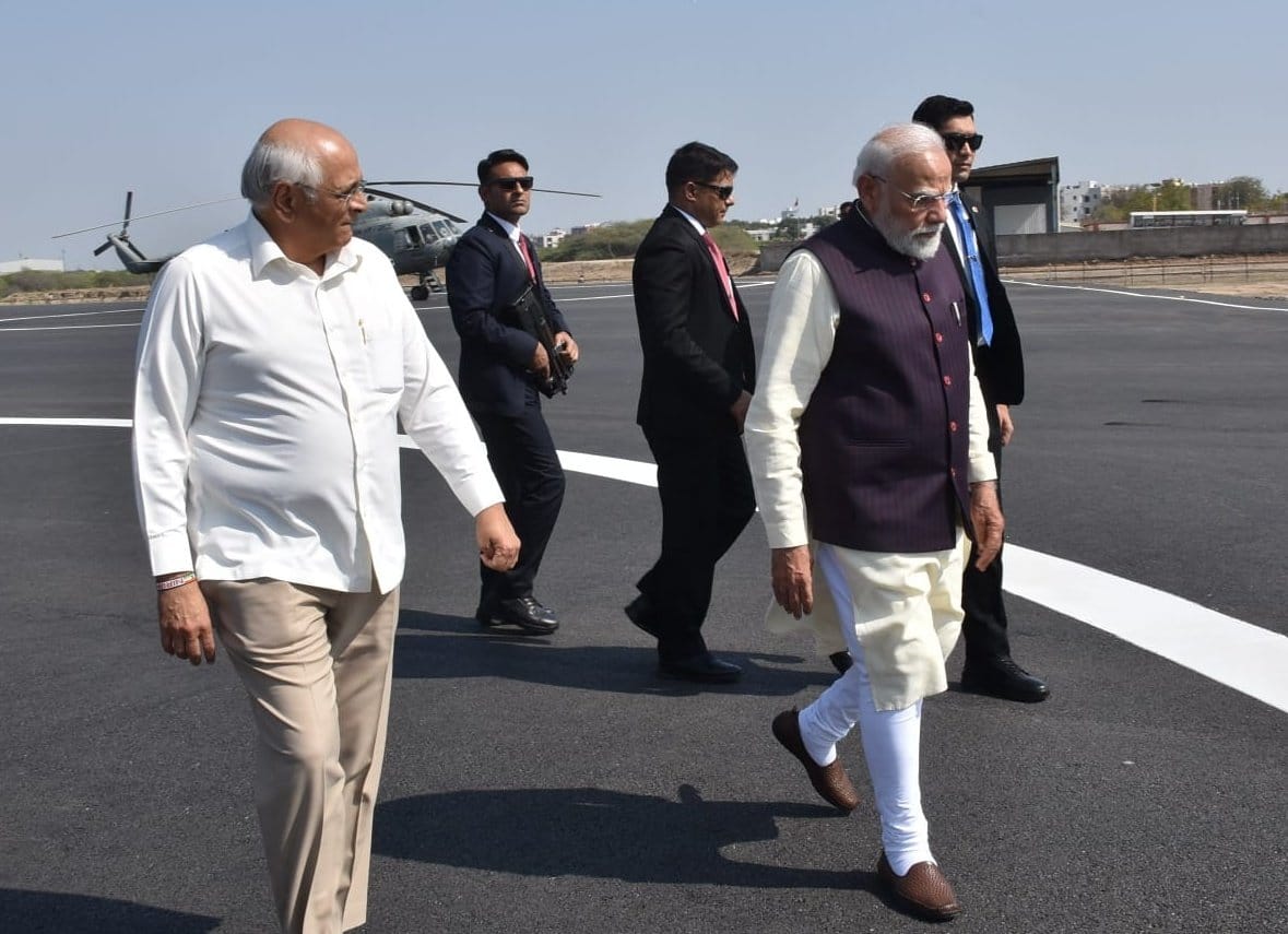 માનનીય વડાપ્રધાન શ્રી નરેન્દ્રભાઈ મોદી સેમિકન્ડક્ટર નિર્માણ ક્ષેત્રે ભારતને આત્મનિર્ભર બનાવવાના સંકલ્પને સાકાર કરવાની દિશામાં ગુજરાતને અગ્રેસર કરવા સાણંદ પધાર્યા ત્યારે મુખ્યમંત્રી શ્રી ભૂપેન્દ્રભાઈ પટેલ, નાયબ મુખ્યમંત્રી શ્રી હર્ષભાઈ સંઘવી તેમજ અન્ય મહાનુભાવો દ્વારા તેમનું હાર્દિક સ્વાગત કરવામાં આવ્યું હતું.