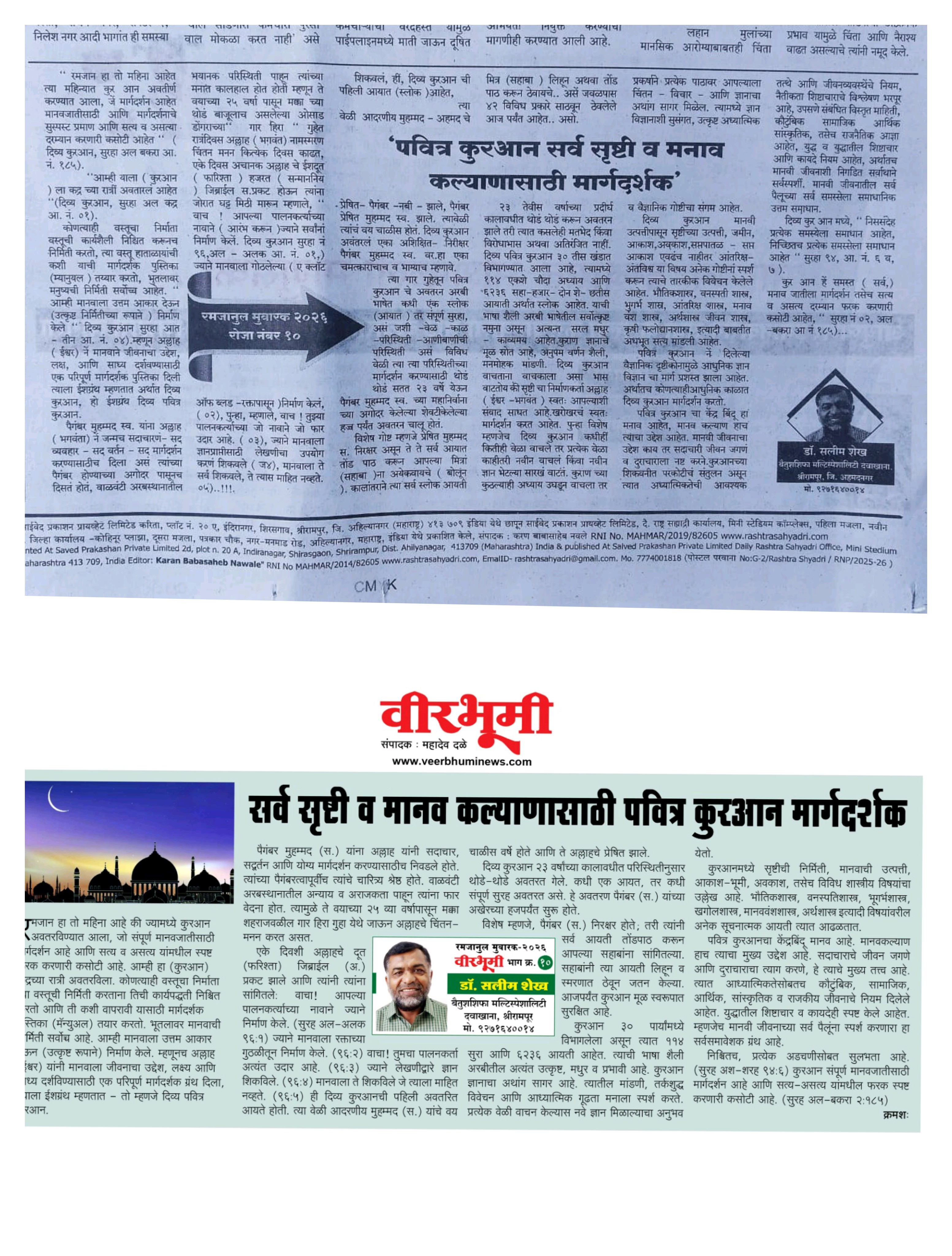 लेखन, डॉ. सलीम शाहिदा सिकंदर शेख.