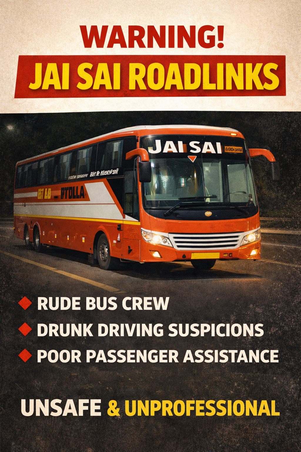 Kochi: A passenger from Kochi has raised serious allegations against the crew of a private interstate bus operated by Jai Sai Roadlinks following an incident that reportedly occurred on February 28 during the BLR–KOLLAM service (Bus No: AR01Y5777) from Bangalore to Vytilla, Kochi.