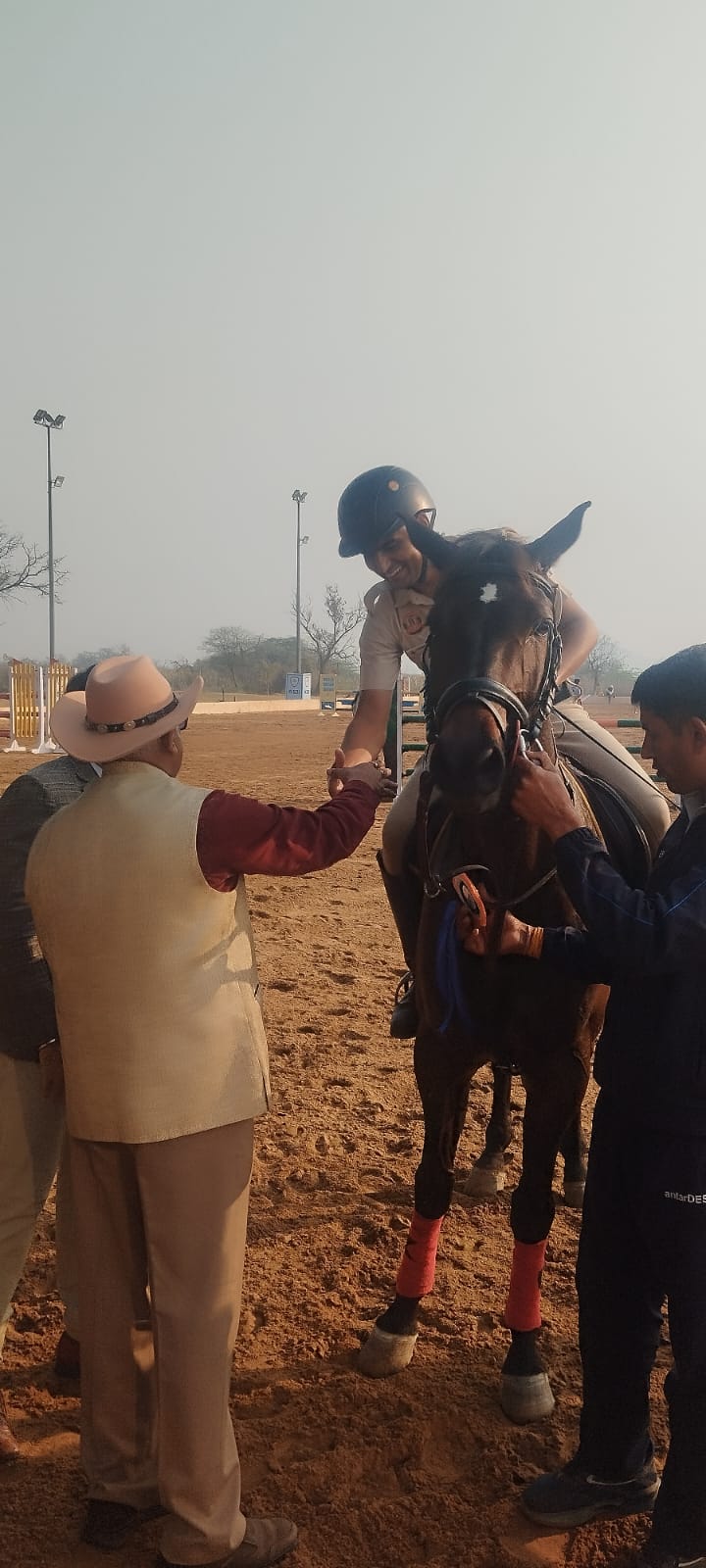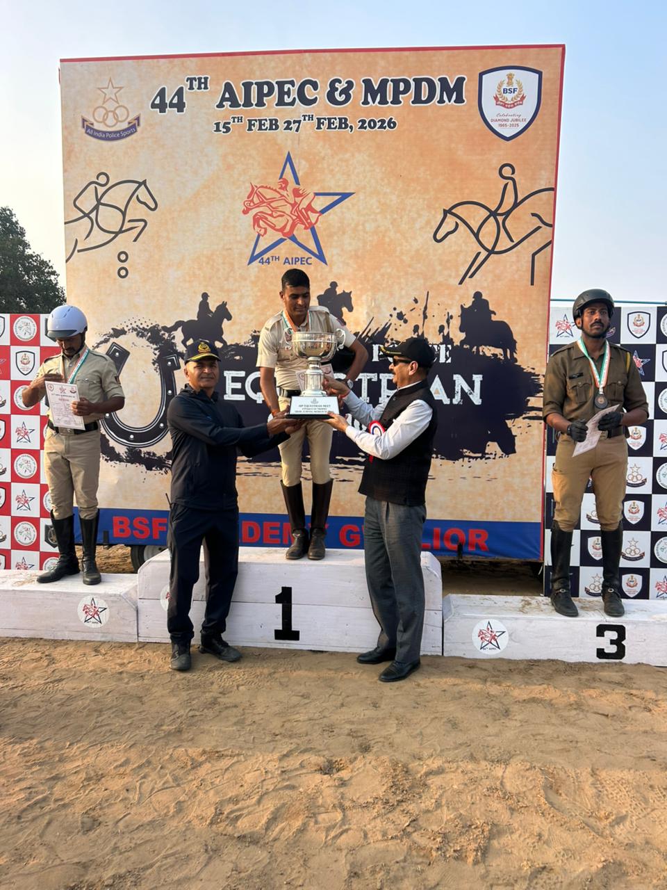 दौसा जिले के बावनपाड़ा गांव निवासी राकेश कुमार कसाना ने राजधानी में आयोजित 44वीं अखिल भारतीय घुड़सवार प्रतियोगिता में उत्कृष्ट प्रदर्शन कर जिले का नाम रोशन किया है। यह प्रतियोगिता BSF Academy Tekanpur (मध्य प्रदेश) में आयोजित हुई, जिसमें देशभर की टीमों ने हिस्सा लिया Delhi Police की घुड़सवार टीम का प्रतिनिधित्व करते हुए राकेश कुमार कसाना ने जंपिंग स्पर्धा में शानदार प्रदर्शन किया और स्वर्ण तथा रजत पदक अपने नाम किए। प्रतियोगिता में उनके घोड़े “आकाश” ने भी बेहतरीन प्रदर्शन करते हुए ऑल इंडिया स्तर पर शामिल 345 घोड़ों में दूसरा सर्वश्रेष्ठ स्थान प्राप्त किया। राकेश कुमार की इस उपलब्धि से गांव बावनपाड़ा सहित पूरे दौसा जिले में खुशी की लहर है। ग्रामीणों और परिजनों ने इसे क्षेत्र के लिए गौरव का क्षण बताया और उन्हें उज्ज्वल भविष्य की शुभकामनाएं दीं।