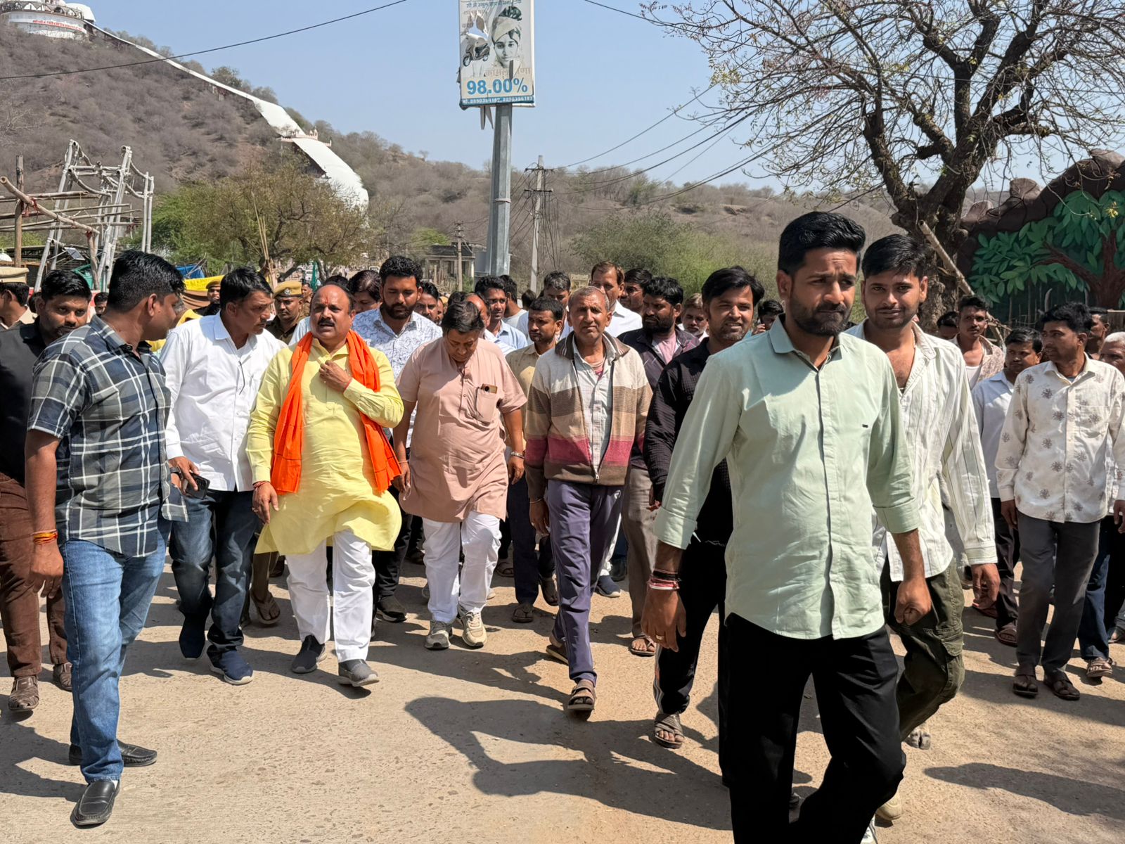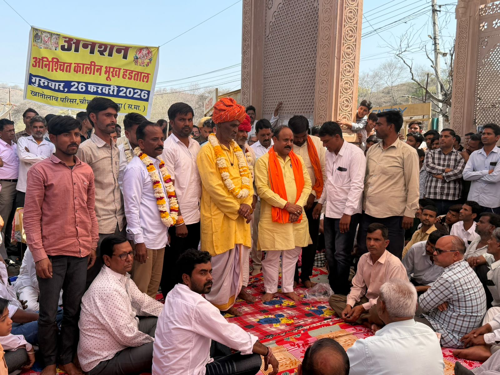 चौथ का बरवाड़ा गुरुवार से शुरू हुआ अनशन आज खंडार विधायक जितेंद्र गोठवाल ने वन विभाग के अधिकारी ओर उपखंड अधिकारी जोगेंद्र सिंह गुर्जर के साथ की वार्ता ओर अनशन कर रहे खातों लाव दुकानदारों से बात करने के बाद दोनों की सहमति से मौखिक 10/10 की दुकान देने पर बात बनी जब जाकर विधायक ने आंदोलन का नेतृत्व कर रहे शंकर लाल सैनी ओर उनके साथ बैठे सभी अनशनकारियों को जूस पिलाकर करवाया अनशन समाप्त।सभी ने विधायक का जताया आभार ।बता दे आपको बन विभाग ने कार्यवाही करते हुए चौथ माता मंदिर से नीचे अस्थाई रूप से बनी दुकानों को कर दिया था ध्वस्त जिसे लेकर दुकानदारों ने वन मंत्री को उपखंड अधिकारी के माध्यम से ज्ञापन देते हुए 24 घंटे का दिया था अल्टीमेटम।24 घंटे में कोई आश्वाशन नहीं मिलने के बाद सभी दुकानदारों ने सैनी धर्मशाला के पास चौथ माता दरवाजे के पास अनशन बैठ गए थे जो आज विधायक जितेंद्र गोठवाल के हस्तक्षेप के बाद समाप्त कर दिया गया