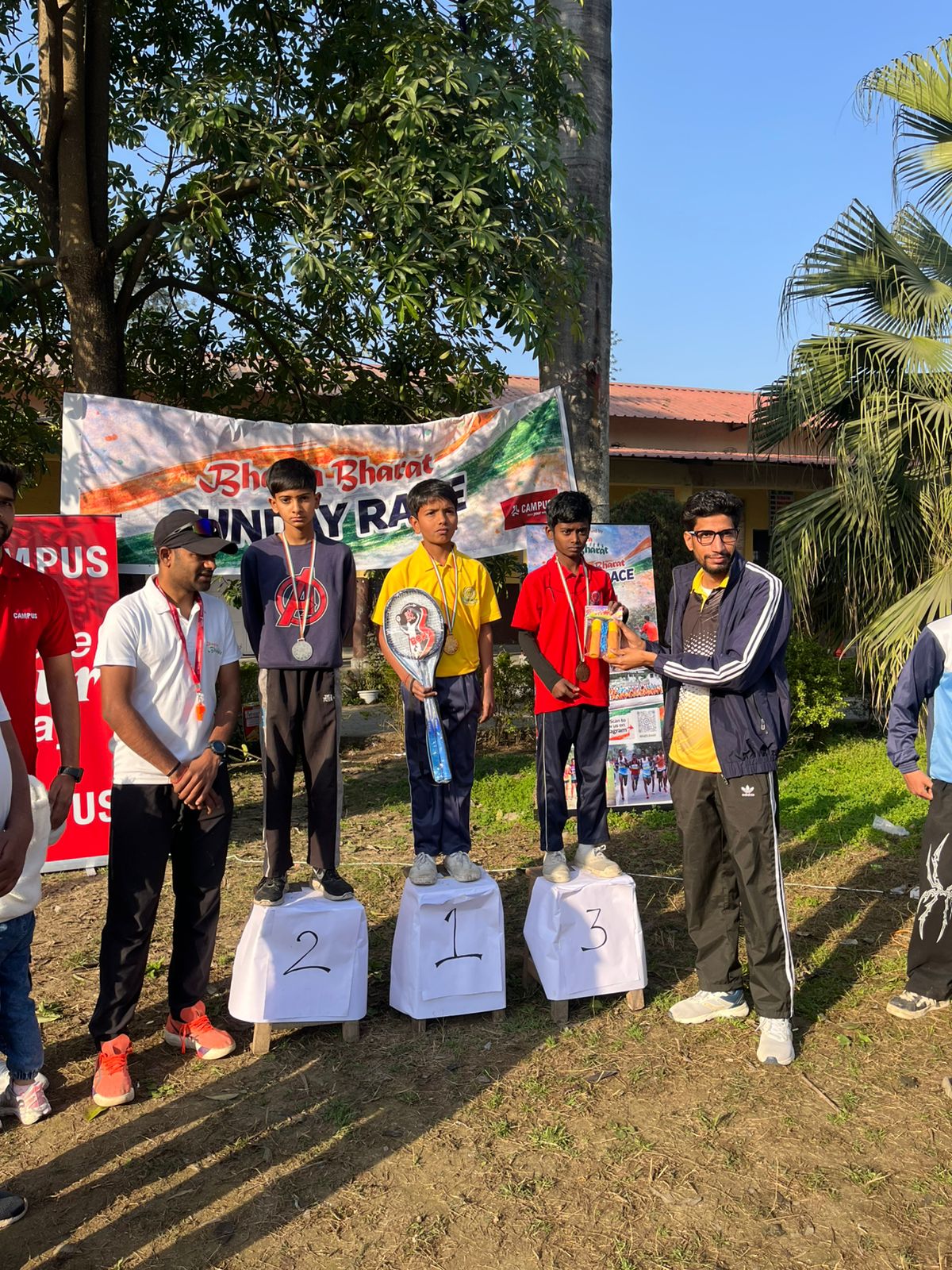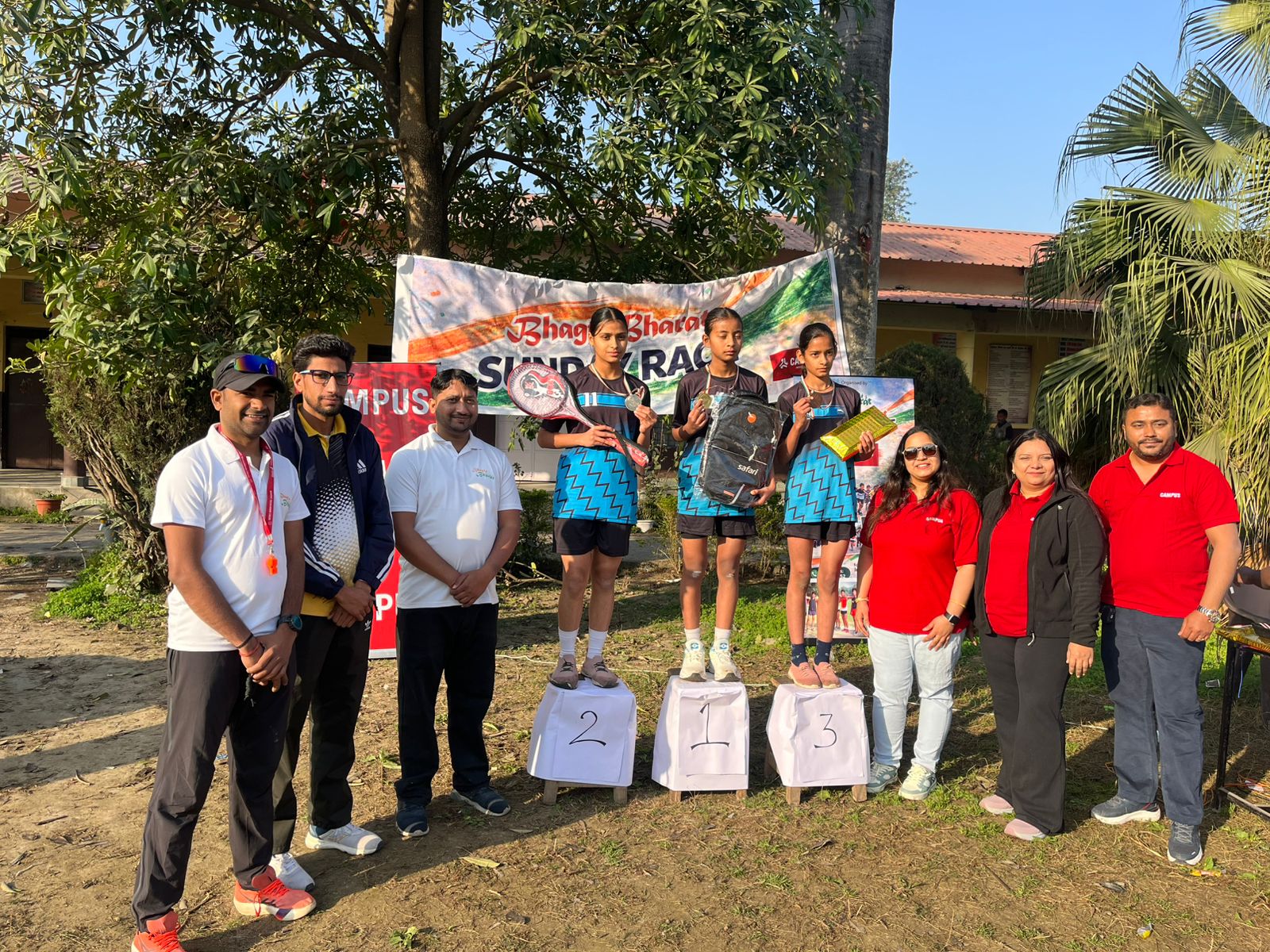 सहसपुर : श्री गुरु राम राय इंटर कॉलेज सहसपुर में सामाजिक संस्था भागता भारत व अक्षांश फाउंडेशन उत्तराखंड के संयुक्त तत्वाधान व कैंपस कंपनी के सहयोग से विभिन्न प्रतियोगिताएँ आयोजित की गयी, जिसमें अलग - अलग वर्गों में दौड़ आयोजित की गयी, इस पहल का उद्देश्य ग्रामीण क्षेत्र के युवाओं को मंच प्रदान करना व नशे से दूर रखना है। प्रतियोगिता में 300 से अधिक छात्र-छात्राओं ने भाग लिया व विजेताओं को मेडल व विभिन्न उपहार प्रदान किए गए, इस मौके पर कैंपस प्रोग्राम हेड अर्चना , विद्यालय के प्रधानाचार्य आलोक बिजल्वान , अक्षांश फाउंडेशन उत्तराखंड के निदेशक रियासत खान रियाज, भागता भारत संस्था से चंदन प्रसाद, अंकुर लखरा उपस्थित रहे ।