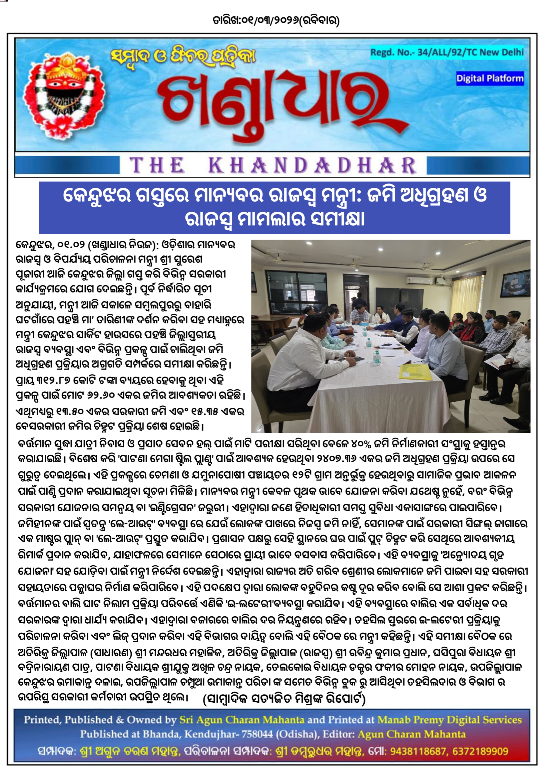 ଖଣ୍ଡାଧାର ନିଉଜ- ସାମ୍ବାଦିକ ସତ୍ୟଜିତ ମିଶ୍ରଙ୍କ ରିପୋର୍ଟ।