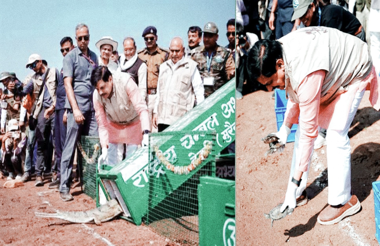 मुख्यमंत्री ने कूनो नदी में रिलीज किये अलग अलग प्रजाति के घड़ियाल और कछुए