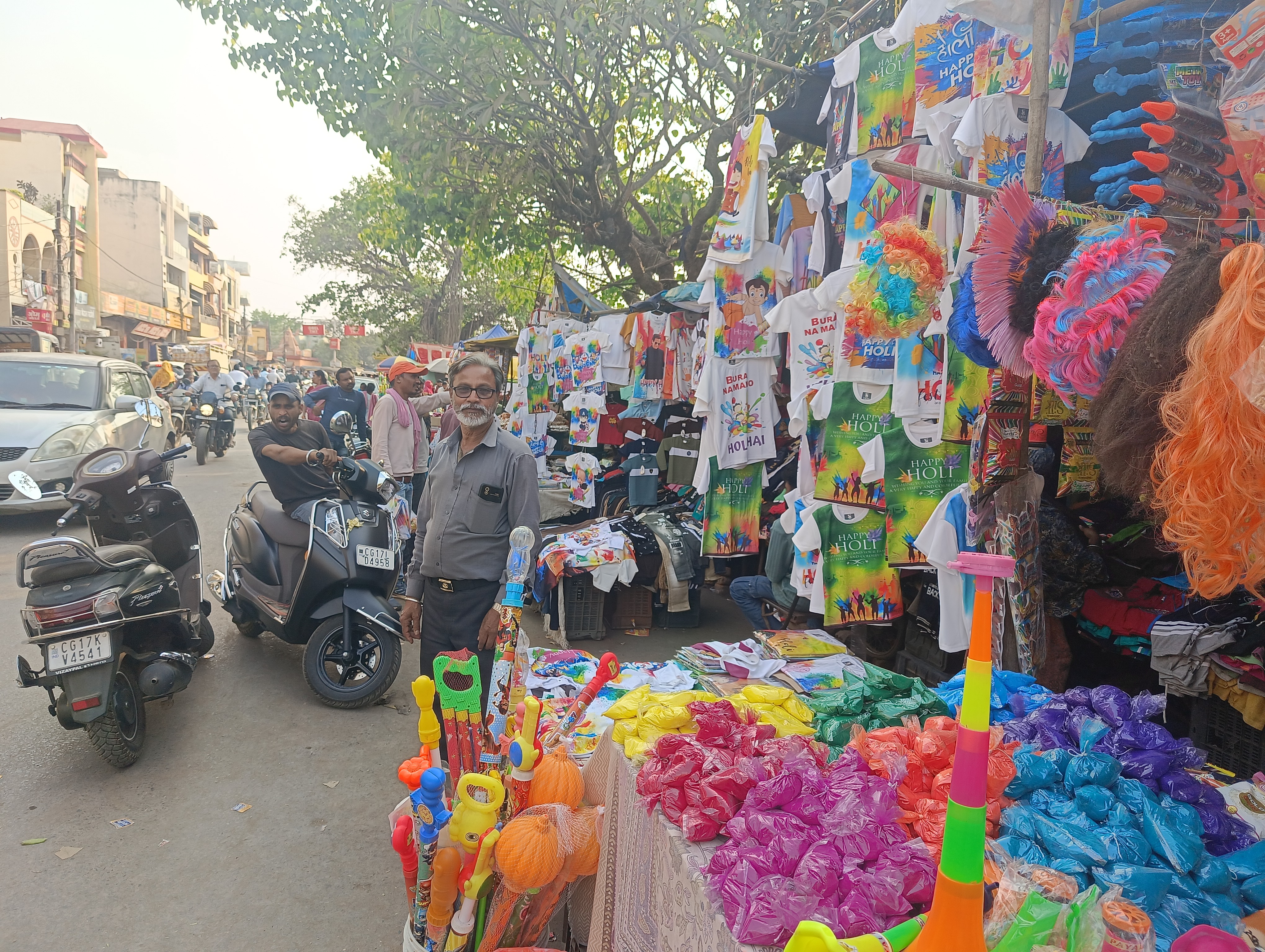 आज होलिका दहन के दिन संजय मार्केट में काफी मात्रा में भीड़ देखी गई जहां पर लोग गुलाल पिचकारी लेने के लिए उमड़ पड़े और यह देखा गया कि संजय मार्केट चौक चौराहा पर नगाड़ा बेच रहे थे नगाड़े की कीमत लगभग ₹2500 है वह छोटे बाजा की कीमत ₹200 रखी गई है होलिका दहन बड़ी धूमधाम से मनाया जाता है।