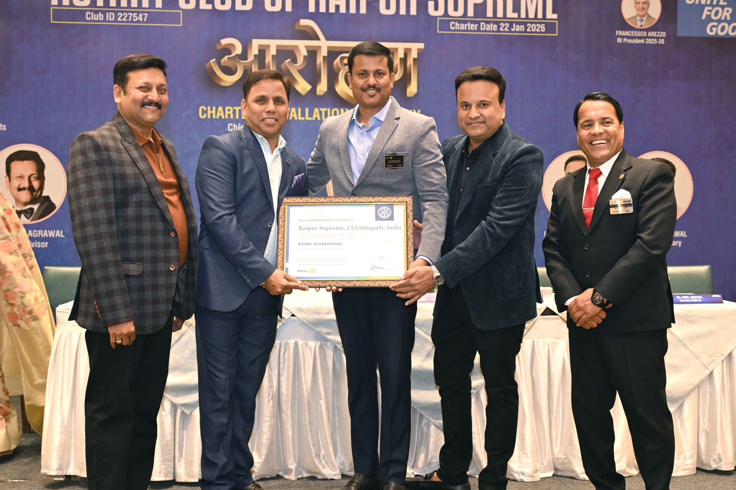 1 MarchThe Charter Installation Ceremony of the Rotary Club of Raipur Supreme was held with great dignity and enthusiasm on Sunday, 1st March 2026, at Hotel Babylon International. The event reflected the true spirit of Rotary—service, fellowship, and leadership—bringing together distinguished dignitaries and Rotarians from across the district.