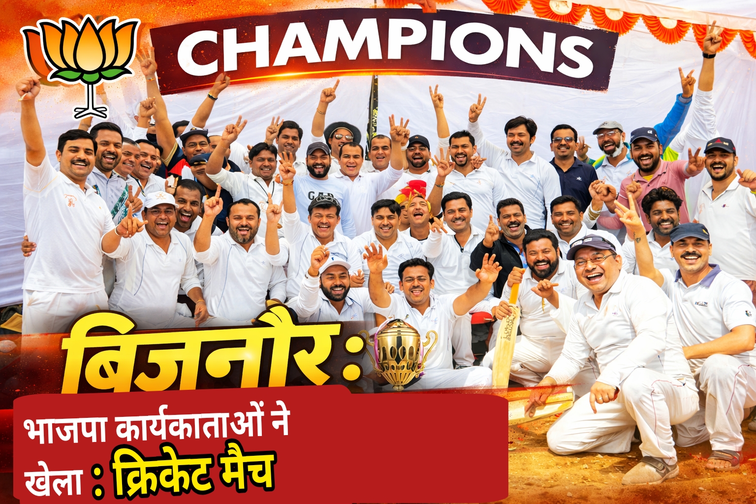 लंबे अरसे बाद भाजपा कार्यकर्ताओं ने क्रिकेट की पिच पर रोमांचकारी मैत्री मैच का आनंद लिया। नेहरू स्टेडियम, बिजनौर में आदमपुर मंडल क्रिकेट टीम और नगर मंडल क्रिकेट टीम के बीच खेले गए क्रिकेट मैच में जोश, जुनून और एकता की भावना देखने को मिली।