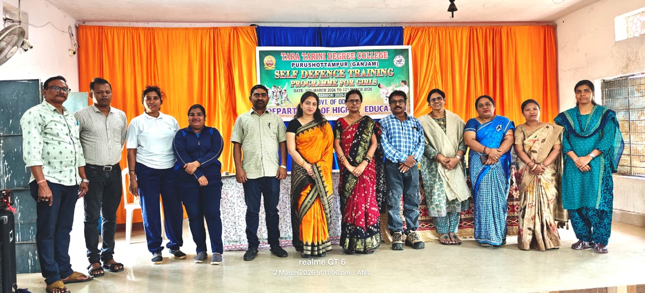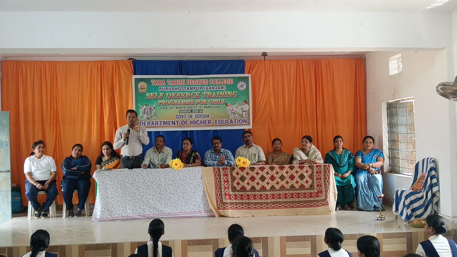 ପୁରୁଷୋତ୍ତମପୁର, ତା ୦୨/୦୩/୨୬: ସ୍ଥାନୀୟ ତାରାତାରିଣୀ ମହାବିଦ୍ୟାଳୟରେ ଛାତ୍ରୀମାନଙ୍କ ସଶକ୍ତିକରଣ ଓ ସୁରକ୍ଷାକୁ ଲକ୍ଷ୍ୟ କରି ଆତ୍ମରକ୍ଷା ତାଲିମ ଶିବିର ଆୟୋଜିତ ହୋଇଯାଇଛି। ଏହି ଶିବିର ଆତ୍ମସୁରକ୍ଷା ସଂଯୋଜିକା ଡଃ ଶ୍ରାବଣୀ ଖଟାଇଙ୍କ ପ୍ରତ୍ୟକ୍ଷ ତତ୍ତ୍ୱାବଧାନରେ ଅନୁଷ୍ଠିତ ହୋଇଥିଲା।