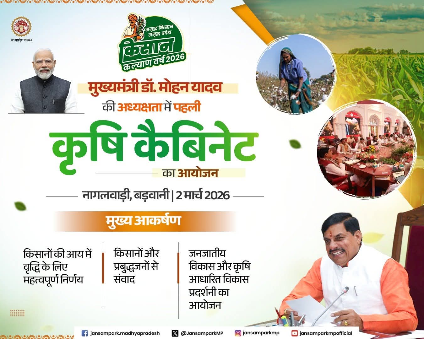 आज मुख्यमंत्री डॉ. मोहन यादव की अध्यक्षता में बड़वानी के नागलवाड़ी में पहली "कृषि कैबिनेट" का आयोजन