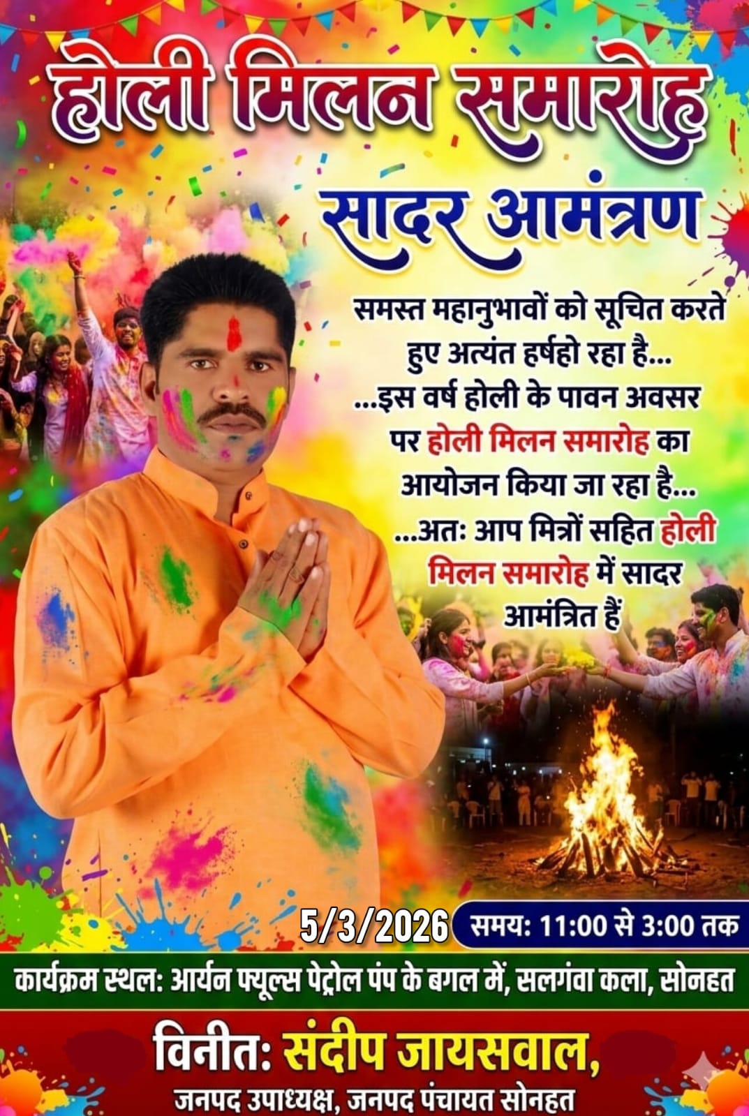 अतः आप इस मित्रों सहित होली मिलन समारोह में सादर आमंत्रित हैं