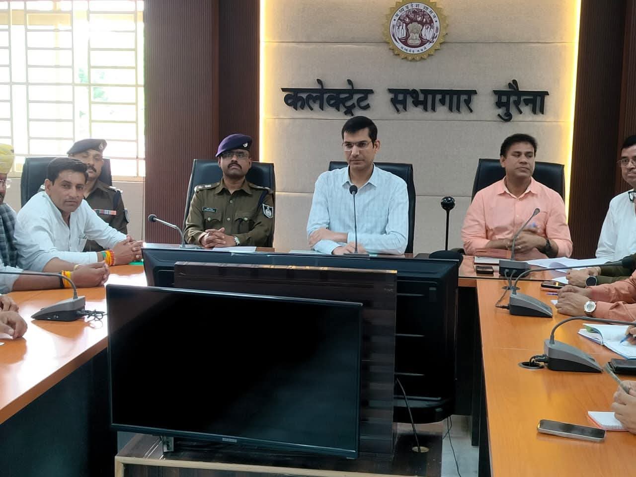 सोमवार को कलेक्ट्रेट सभागार, मुरैना में आयोजित जिला स्तरीय शांति समिति की बैठक को संबोधित करते हुए कलेक्टर ने उक्त विचार व्यक्त किए। बैठक में पुलिस अधीक्षक श्री समीर सौरभ, मुख्य कार्यपालन अधिकारी जिला पंचायत श्री कमलेश कुमार भार्गव, अतिरिक्त पुलिस अधीक्षक श्री सुरेन्द्र सिंह डाबर, अपर कलेक्टर श्री अश्विनी कुमार रावत, सीएसपी श्रीमती दीपाली चंदौरिया, एसडीएम मुरैना सहित विभिन्न विभागों के अधिकारी एवं शांति समिति के पदाधिकारी उपस्थित रहे।