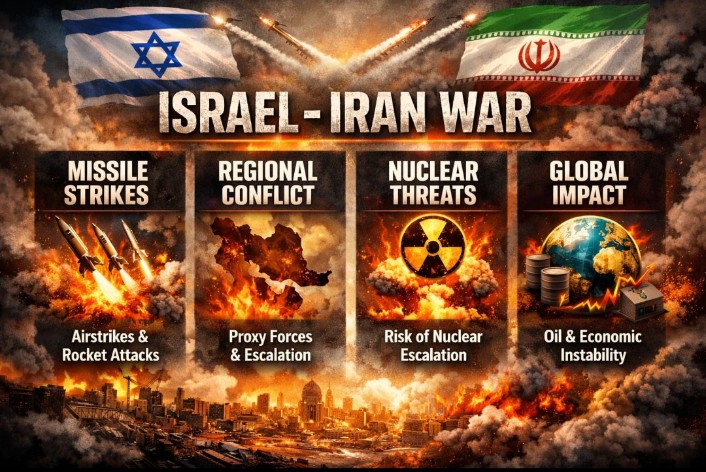 In the latest developments of the war between Israel and Iran, involving strong support from the United States, the crisis has expanded into a broader regional conflict with significant geopolitical, economic, and humanitarian consequences. The conflict began when joint U.S.–Israeli forces launched major strikes on Iranian military and strategic infrastructure late last week, killing key leaders including Iran’s Supreme Leader and damaging command and control facilities across Tehran and other cities. Iran has responded with widespread missile and drone attacks on Israeli territory, U.S. bases, and allied Gulf states, while proxy groups such as Hezbollah in Lebanon have intensified their attacks on northern Israel.