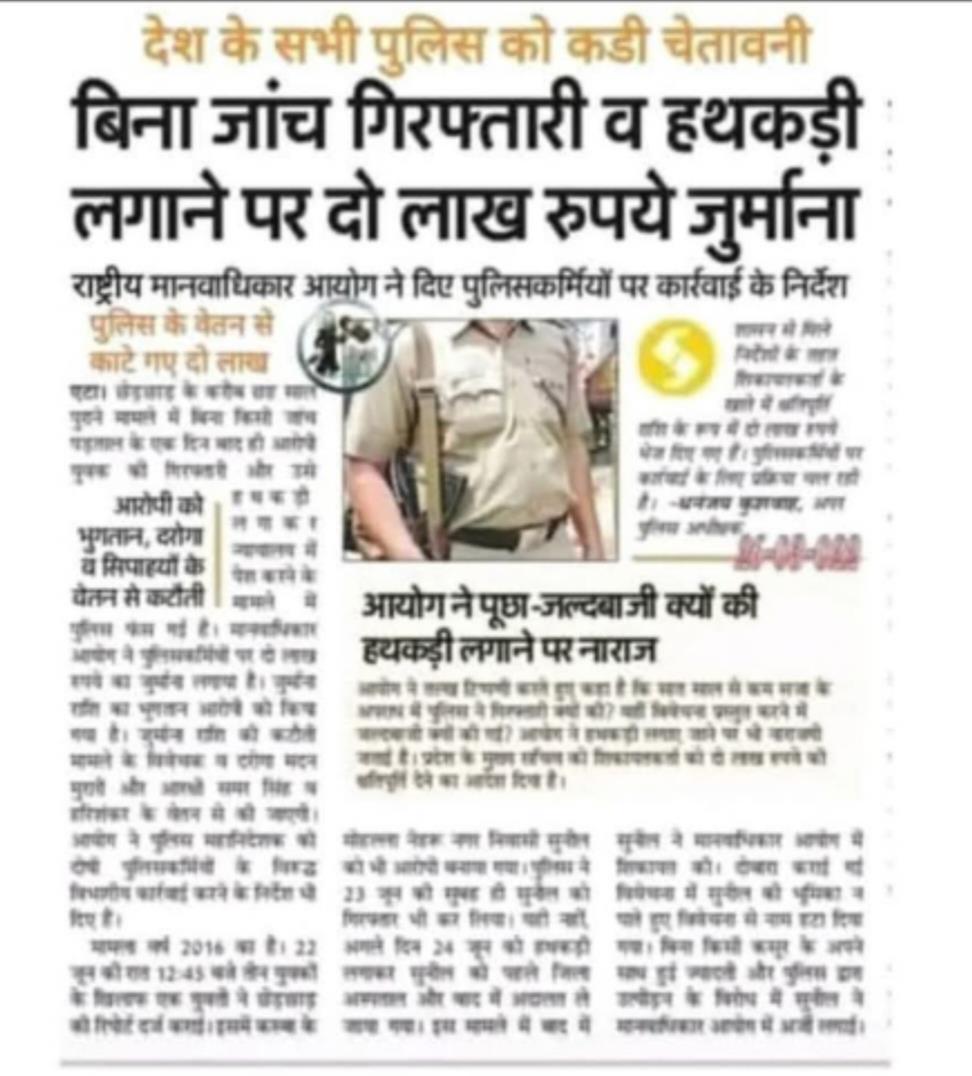 आयोग ने यह भी कहा है कि वर्दी का दुरुपयोग किसी भी हाल में बर्दाश्त नहीं किया जाएगा। यदि कोई पुलिसकर्मी नियमों की अनदेखी करते हुए बिना कानूनी प्रक्रिया के गिरफ्तारी करता है या हथकड़ी लगाता है, तो उसके खिलाफ कड़ी कार्रवाई की जाएगी।