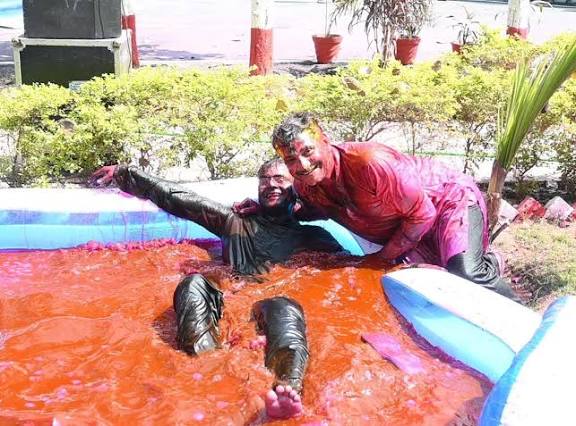 इस दौरान का एक खास दृश्य भी सामने आया, जिसमें पुलिस कमिश्नर और जिलाधिकारी रंगों से भरे टब में मस्ती करते दिखे। दोनों अधिकारियों की यह तस्वीरें सोशल मीडिया पर भी तेजी से चर्चा का विषय बन गईं। प्रशासनिक जिम्मेदारियों के बीच इस तरह का हल्का-फुल्का माहौल देखने को मिला।