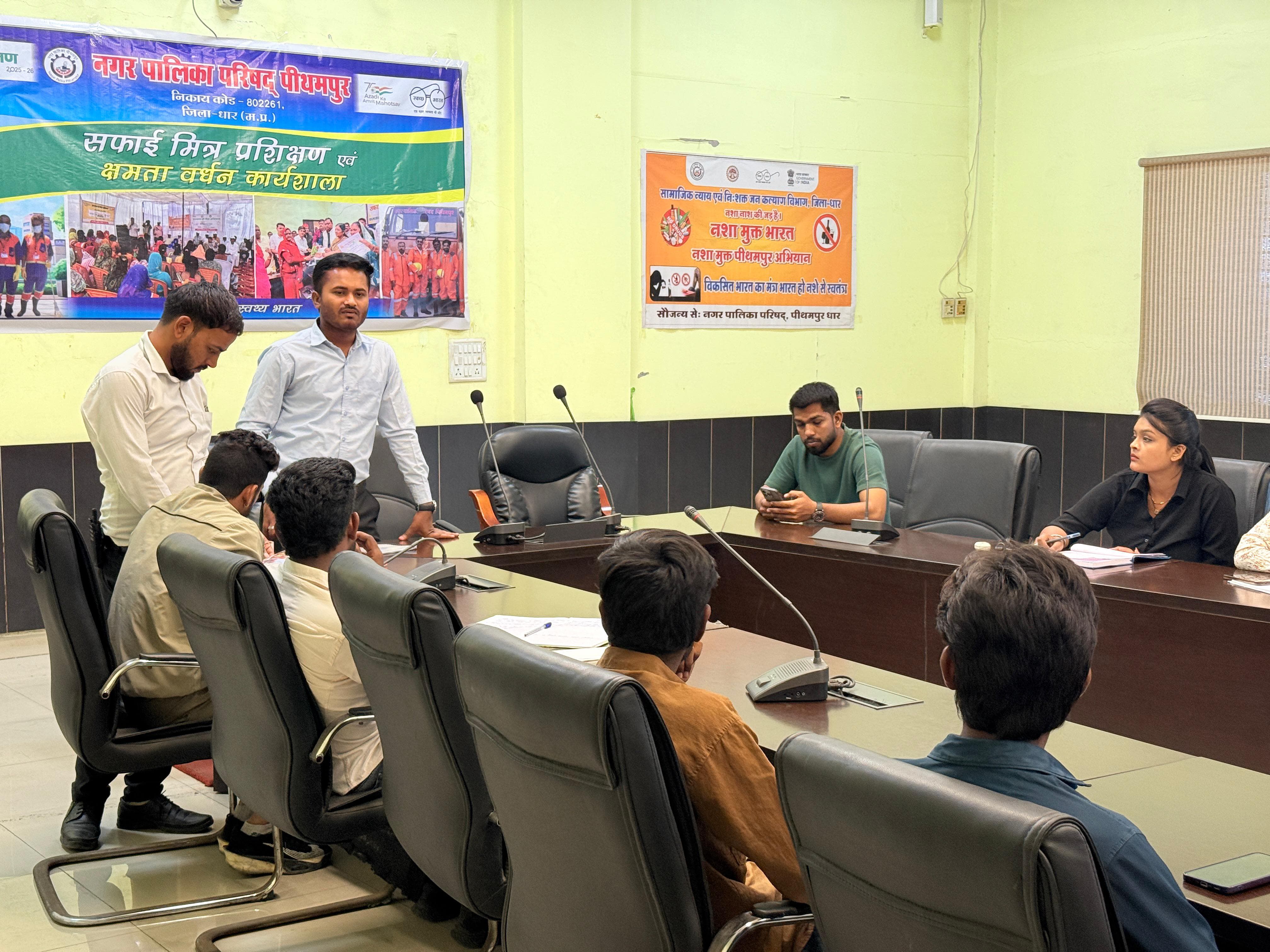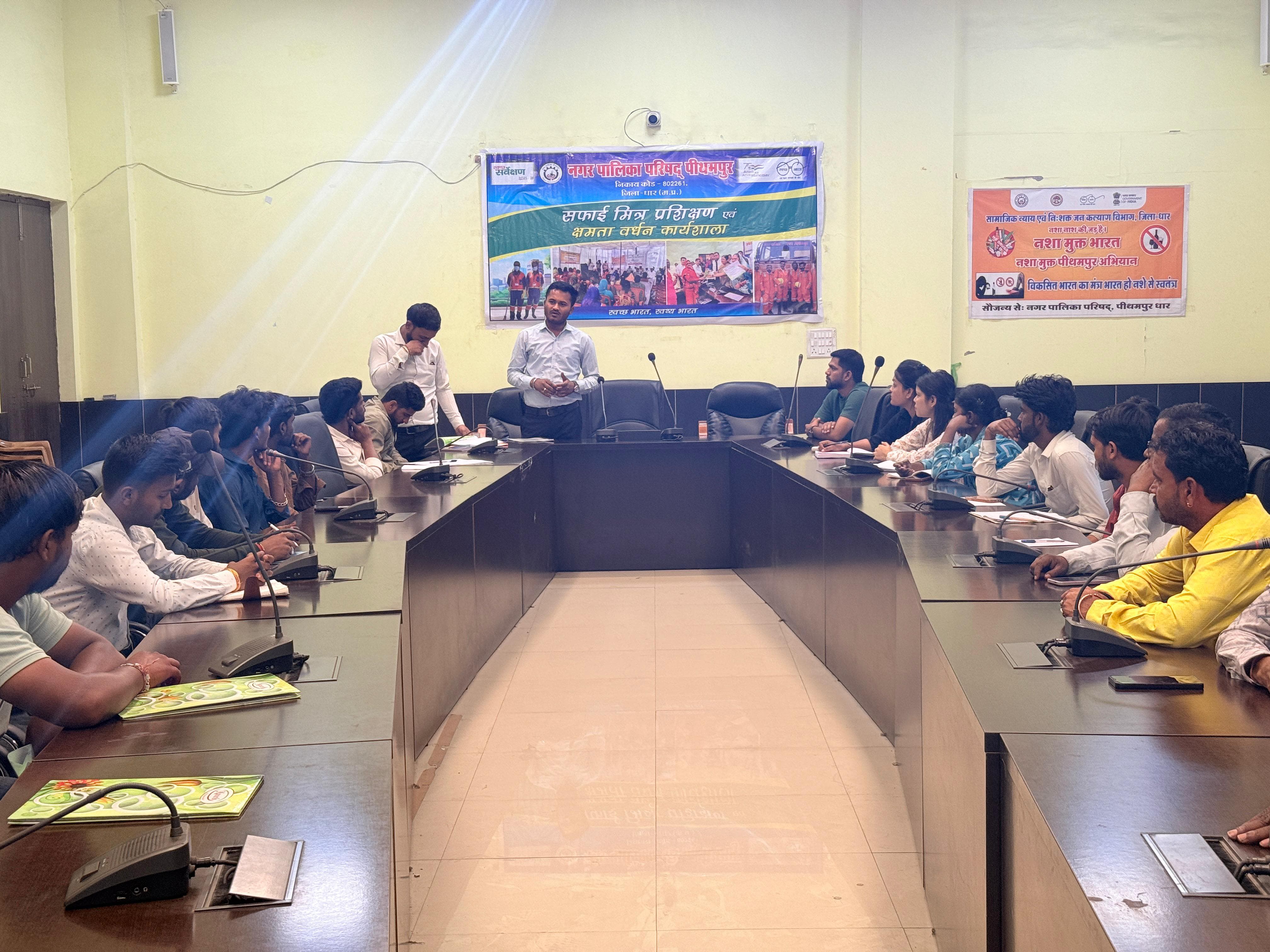 नगर पालिका परिषद पीथमपुर द्वारा स्वच्छ सर्वेक्षण 2025–26 की तैयारियों को और अधिक प्रभावी बनाने के उद्देश्य से मुख्य कार्यालय के परिषद हॉल में सफाई मित्र प्रशिक्षण सह क्षमतावर्धन कार्यशाला का आयोजन किया गया। यह कार्यक्रम नगर पालिका अध्यक्ष श्रीमती सेवन्ती सुरेश पटेल एवं मुख्य नगर पालिका अधिकारी श्री निशिकांत शुक्ला के निर्देशानुसार आयोजित किया गया।