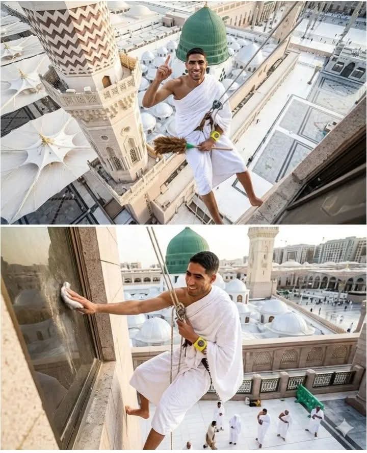 Achraf Hakimi demonstrates that true greatness in faith and humility, performing Umrah and serving at Al-Masjid an-Nabawi, inspiring millions to stay grounded beyond fame and success.