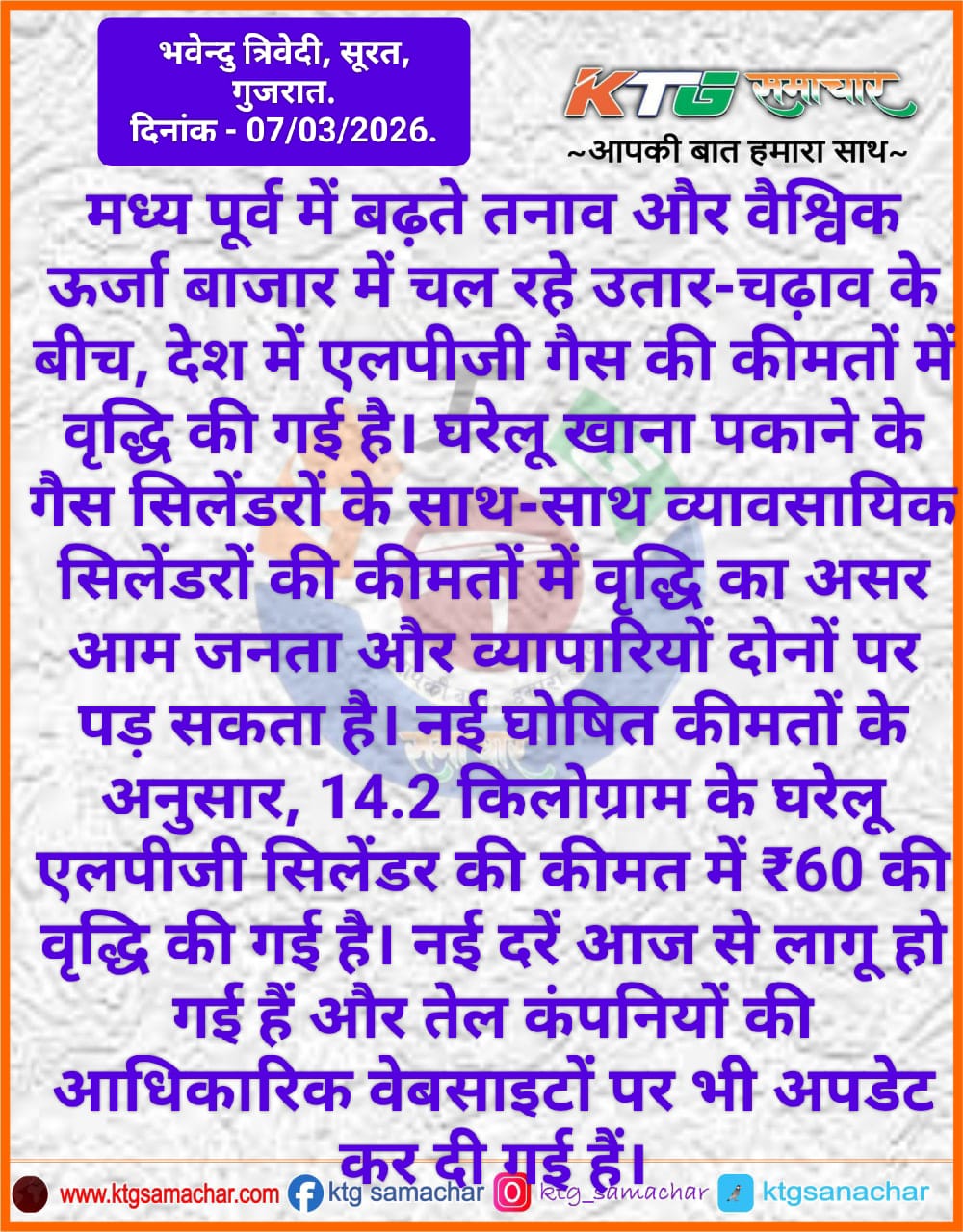एलपीजी गैस की कीमतों में वृद्धि की गई है।
