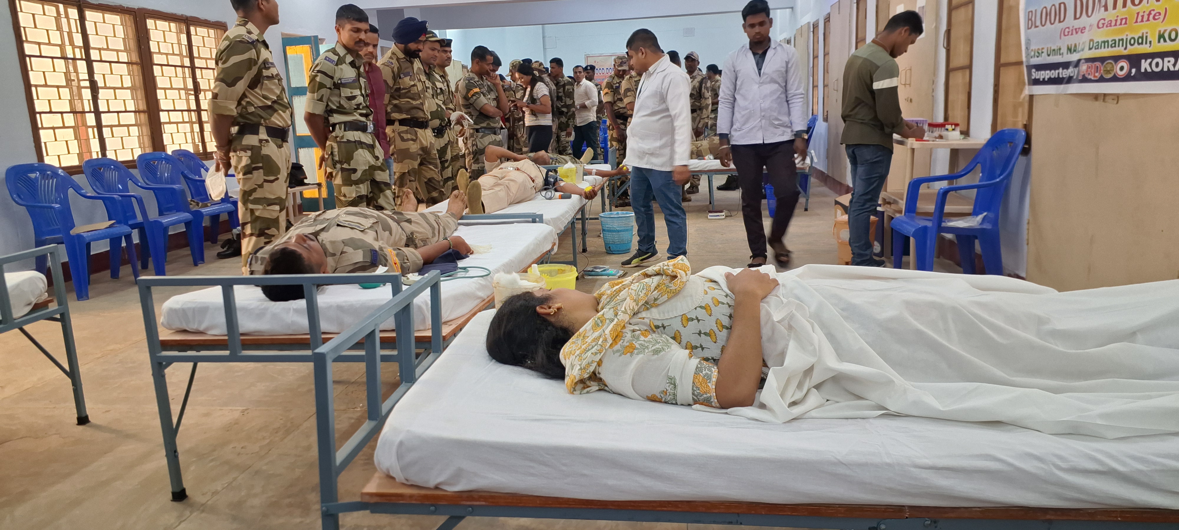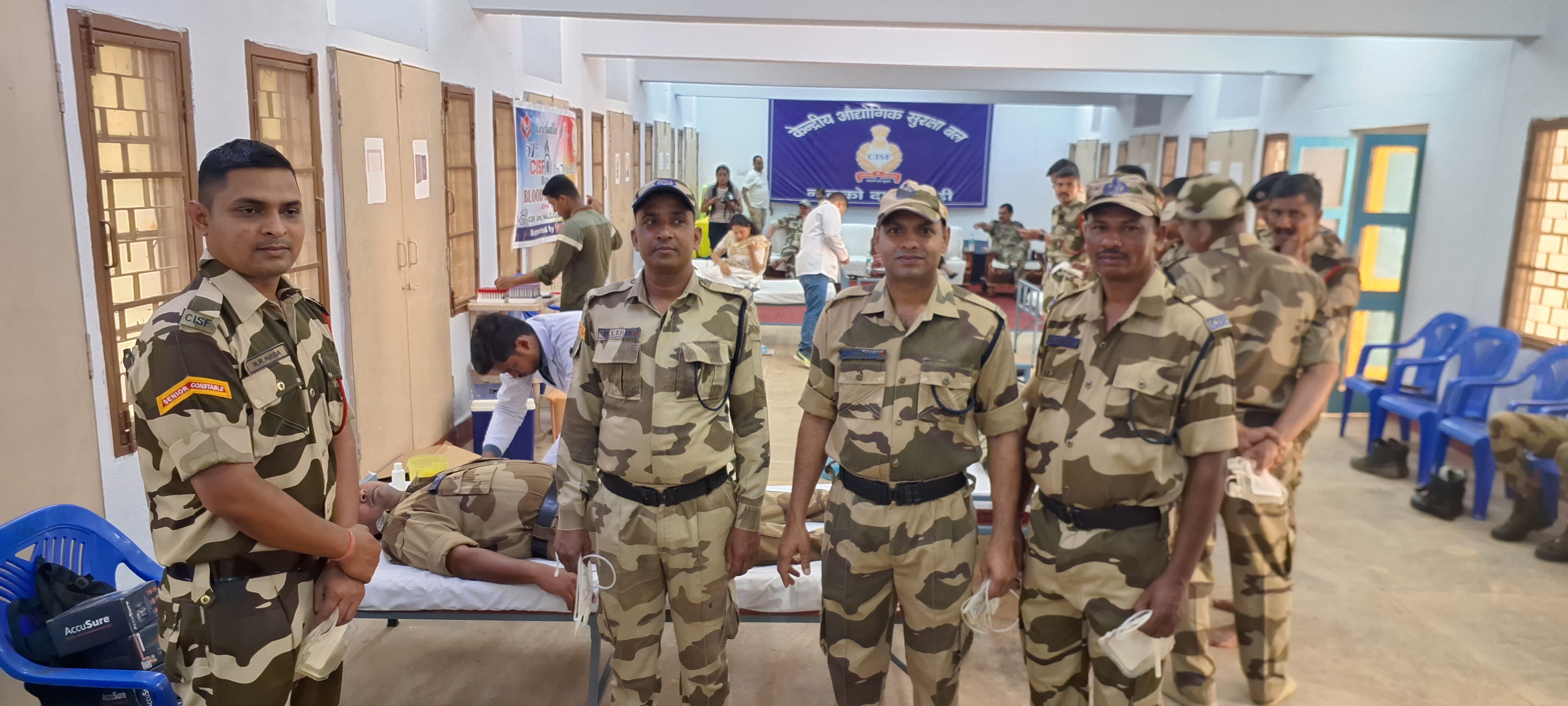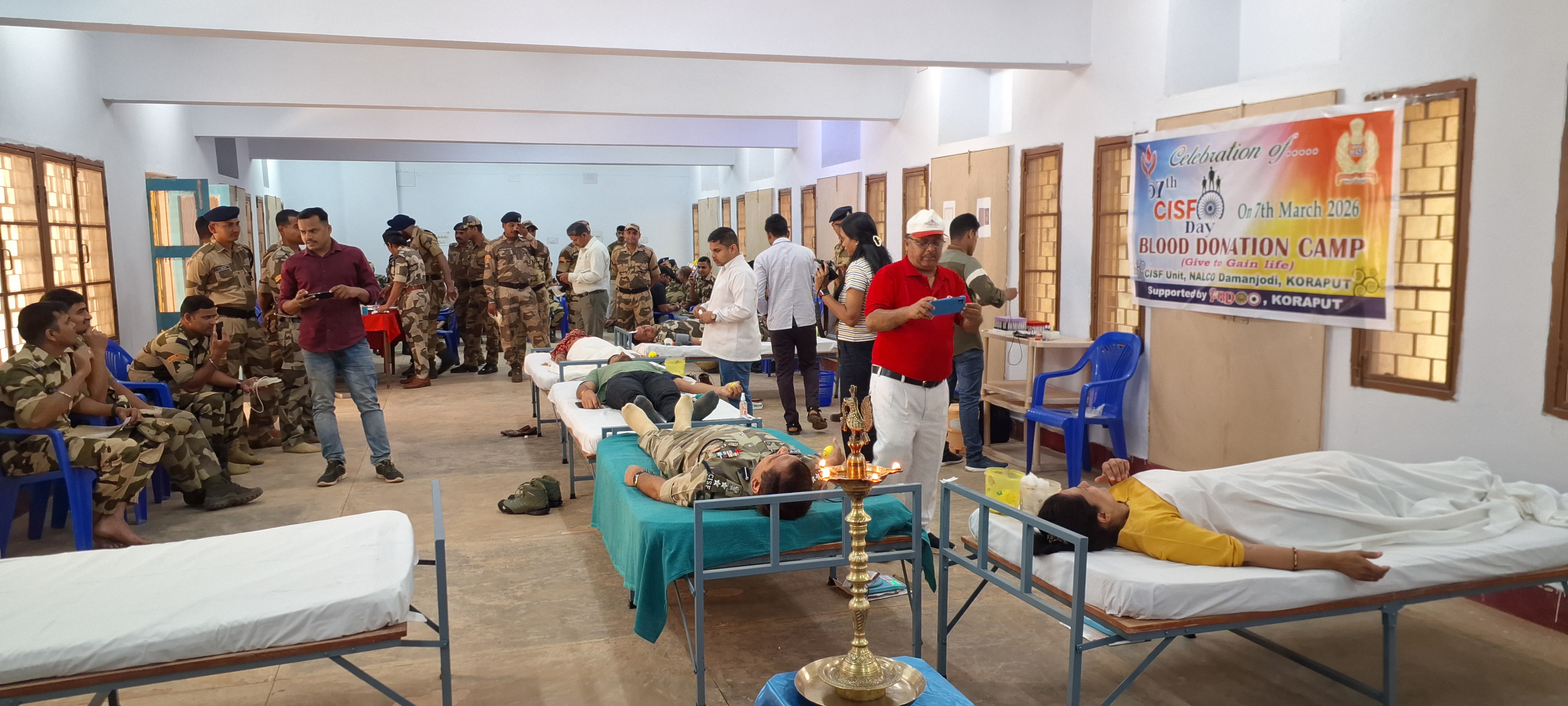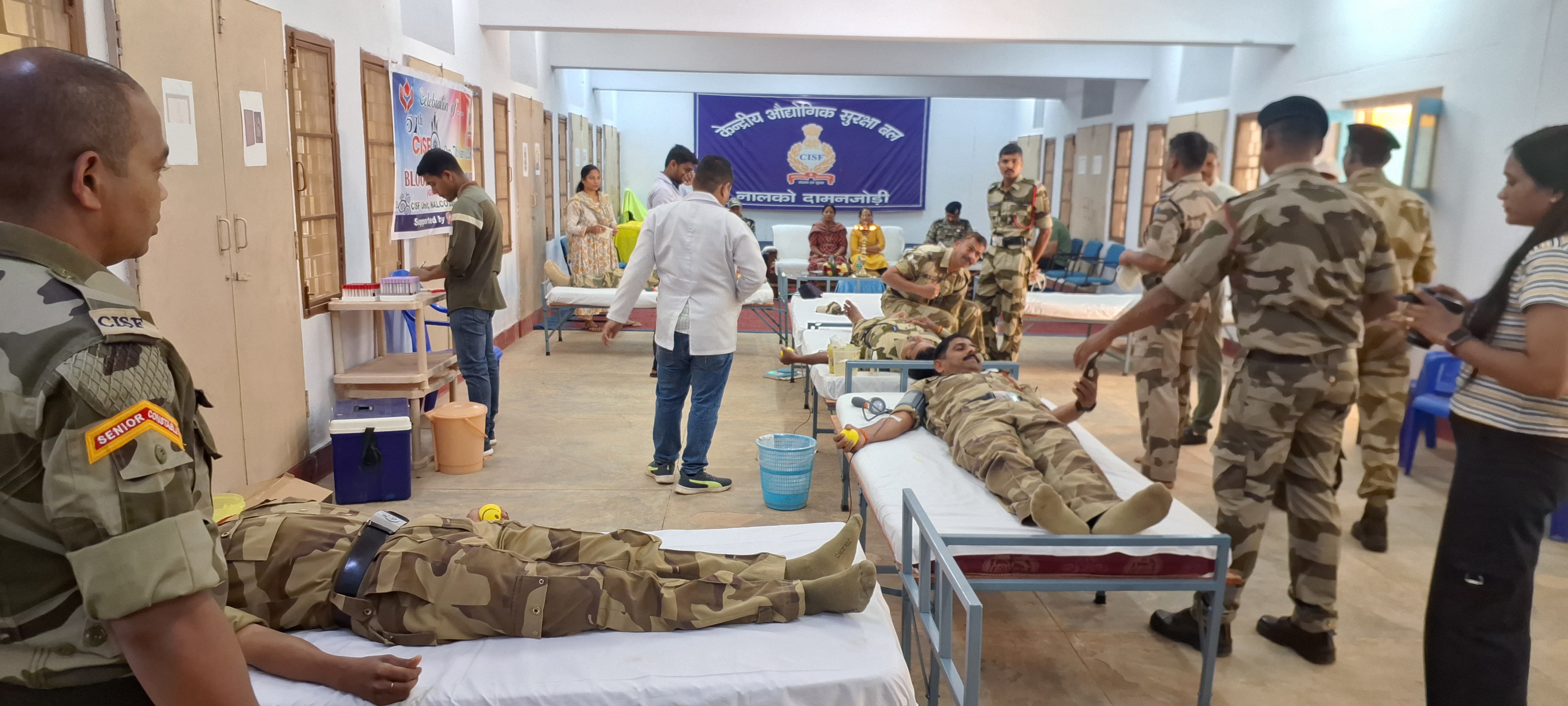 Damanjodi: A voluntary blood donation camp was organized on the occasion of the 57th Foundation Day of the Central Industrial Security Force (CISF), which is responsible for the security of the industrial sector NALCO. Organized under the direct supervision of Senior Commandant Satyadev Arya, 57 units of blood were collected in this program keeping in mind the foundation day. The blood collection team, led by a doctor from Koraput Shaheed Laxman Nayak Medical College Hospital Blood Bank, collected the blood. Senior Commandant Shri Arya inaugurated the program by lighting the lamp. Fire Department Deputy Commandant Narendra Singh, Inspector Ranjan Kumar Maharana managed the program while Bhagirthi Swain, Tapan Nayak, Balaram Nath and all the staff cooperated. Shri Arya donated blood as a family with his wife and son, while Shri Singh donated blood as a spousal donation with his wife.