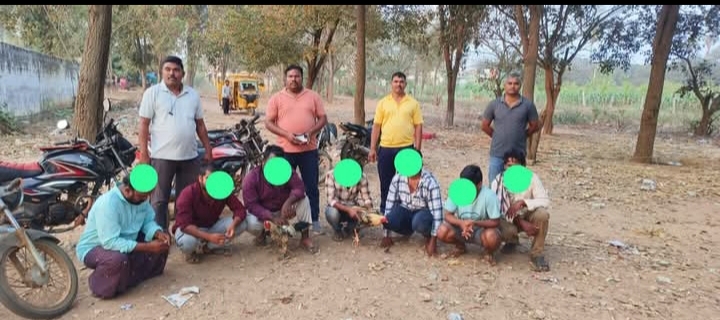నూజివీడు మండలం సుంకొల్లు గ్రామంలో కోడి పందాల స్థావరంపై రూరల్ పోలీసులు మెరుపు దాడి నిర్వహించి 07 మందిని అదుపులోకి తీసుకున్నారు. వారి వద్ద నుంచి 06 కోడి పుంజులు, 02 కోడి కత్తులు, 06 బైకులు, రూ.5,440 నగదు స్వాధీనం చేసుకున్నారు.