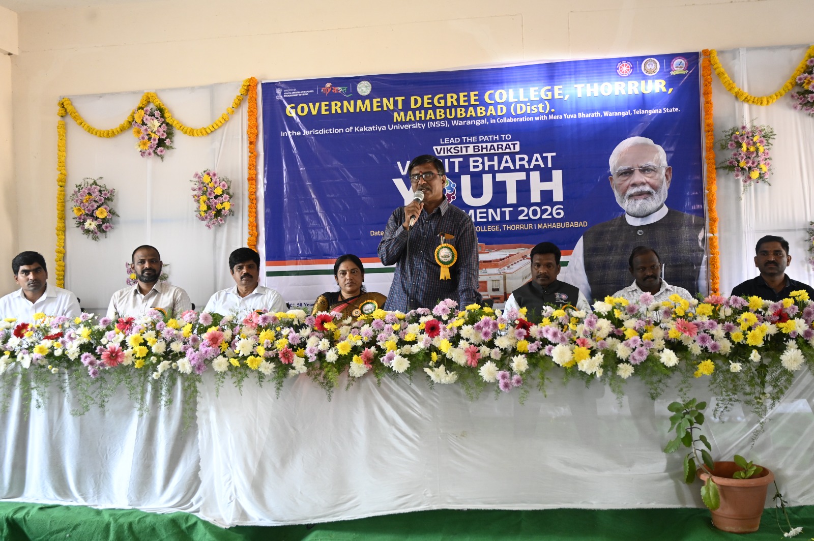 తొర్రూరు మార్చి 7(AIMEDIA. )విద్యార్థులు యువత చదువుతోపాటు నాయకత్వ లక్షణాల పెంపుపై శ్రద్ధ చూపాలని, ఎన్ఎస్ఎస్ లో చేరితే అలాంటి లక్షణాలు పెంపొందుతాయని కాకతీయ విశ్వవిద్యాలయం ఎన్ఎస్ఎస్ కోఆర్డినేటర్ ఈసం నారాయణ తెలిపారు. మహోబా జిల్లా తొర్రూర్ డివిజన్ కేంద్రంలోని ప్రభుత్వ డిగ్రీ కళాశాలలో శనివారం ఘనంగా వికసిత్ భారత్ యూత్ పార్లమెంట్ సమావేశం నిర్వహించారు. కళాశాల ప్రిన్సిపల్ డాక్టర్ బోలగాని రాములు అధ్యక్షతన నిర్వహించిన కార్యక్రమానికి ఆయన ముఖ్య అతిథిగా హాజరై మాట్లాడారు. వికసిత్తు భారత్ యూత్ పార్లమెంటు సమావేశాలతో విద్యార్థులలో లీడర్షిప్ క్వాలిటీస్, సమాజంలో కొనసాగుతున్న పరిణామాలపై మరింత అవగాహన వస్తుందన్నారు. భవిష్యత్తులో మంచి నాయకులుగా ఎదగడానికి ఇలాంటి కార్యక్రమాలు ఎంతో ఉపకరిస్తాయి అన్నారు. ఇచ్చిన అంశంపై మూడు నిమిషాలు అనర్గళంగా మాట్లాడిన వారిని ఎంపిక చేసి రాష్ట్రస్థాయి పోటీలకు పంపుతామన్నారు. సి డబ్ల్యూ సి చైర్ పర్సన్ డాక్టర్ నాగవాణి మాట్లాడుతూ.. వికసిత్ భారత్ యూత్ పార్లమెంట్ సమావేశం విద్యార్థులకు గొప్ప వరమనారు. విద్యార్థి దశలో ఉంటే ఇలాంటి కార్యక్రమాల్లో పాల్గొంటే విద్యార్థుల్లో ఉన్న ఆందోళన భయము, స్టేజీపియర్ వంటివి తొలగిపోతాయన్నారు. చదువుతోపాటు రాజ్యాంగం పార్లమెంటు వంటి వాటిపై మరింత అవగాహన పెంచుకుంటే భవిష్యత్తులో ముఖ్య నాయకులుగా ఎదగటానికి ఇలాంటి కార్యక్రమాలు దిక్సూచిలా పనిచేస్తాయి అన్నారు. అనంతరం ఉపన్యాస పోటీలో పాల్గొన్న విద్యార్థులకు ప్రశంస పత్రాలు అందించి అభినందించారు. అంతకుముందు విద్యార్థులు ప్రదర్శించిన నృత్య ప్రదర్శన,సాంస్కృతిక కార్యక్రమాలు అలరించాయి. కార్యక్రమంలో ఎన్ఎస్ఎస్ జిల్లా సమన్వయకర్త మర్సకట్ల అనిల్ కుమార్, అసిస్టెంట్ ప్రొఫెసర్ ఆఫ్ పొలిటికల్ సైన్స్ డాక్టర్ వి రాజేందర్, నేషనల్ యూత్ అవార్డు గ్రహీత డాక్టర్ మధు, అసోసియేట్ ప్రొఫెసర్ ఆఫ్ హిస్టరీ డాక్టర్ ఎం రెడ్డప్ప, అసిస్టెంట్ ప్రొఫెసర్ ఆఫ్ ఇంగ్లీష్ డాక్టర్ మొహమ్మద్ అర్జున్ అలీ,కళాశాల ఎన్ఎస్ఎస్ విభాగం సమన్వయకర్తలో డాక్టర్ సుజాత డాక్టర్ వాల్య నాయక్, కళాశాల వైస్ ప్రిన్సిపల్ డాక్టర్ శాంతి కుమార్, అధ్యాపకులు డాక్టర్ పార్వతి డాక్టర్ సునీల్, డాక్టర్ అంజుఆరా, రవీందర్ రెడ్డి కృష్ణవేణి, వెంకన్న విజయ్ రాధిక రజిత అధ్యాపకేతర బృందం పాల్గొన్నారు.
