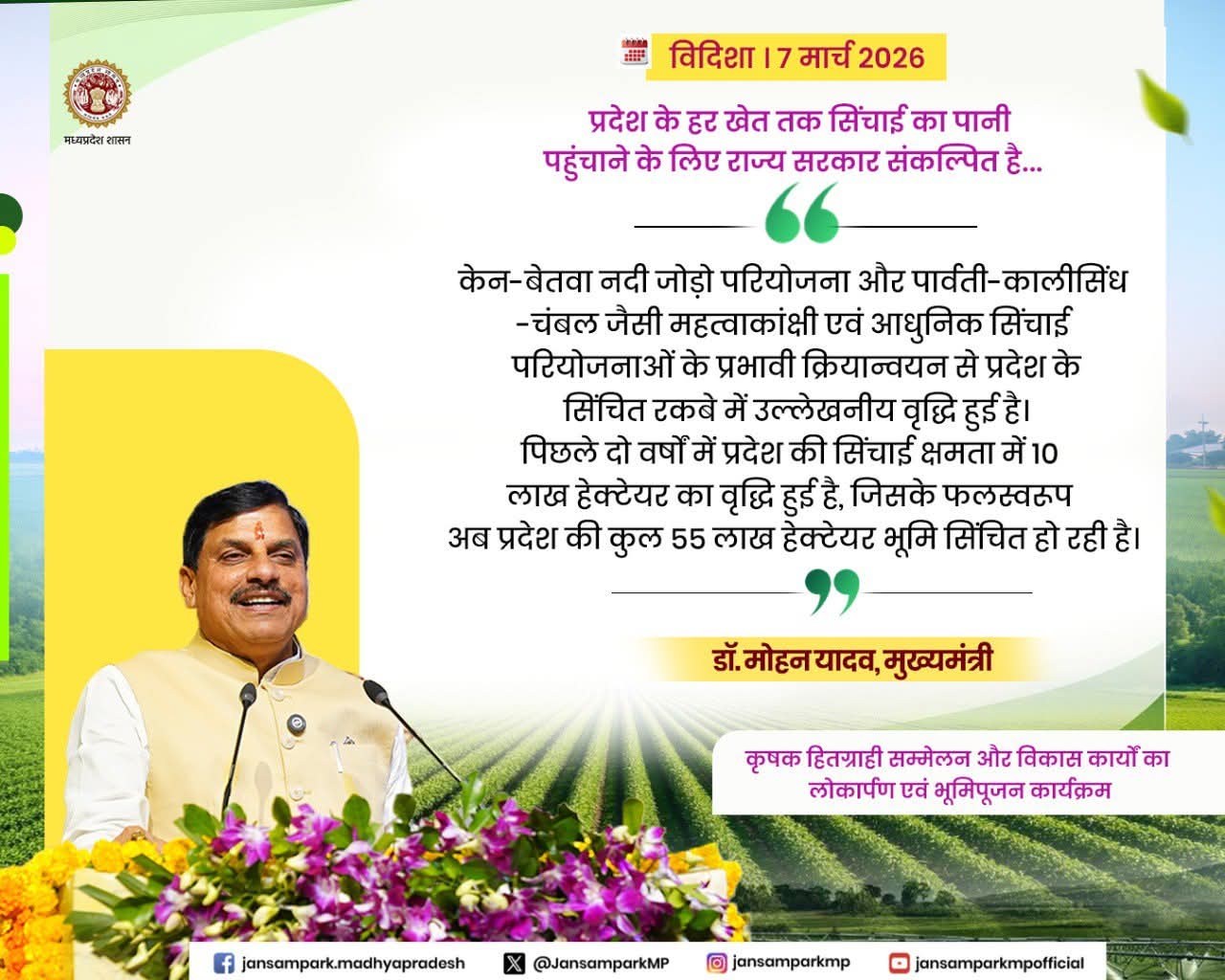 प्रदेश के हर खेत तक सिंचाई का पानी पहुंचाने के लिए राज्य सरकार संकल्पित है...