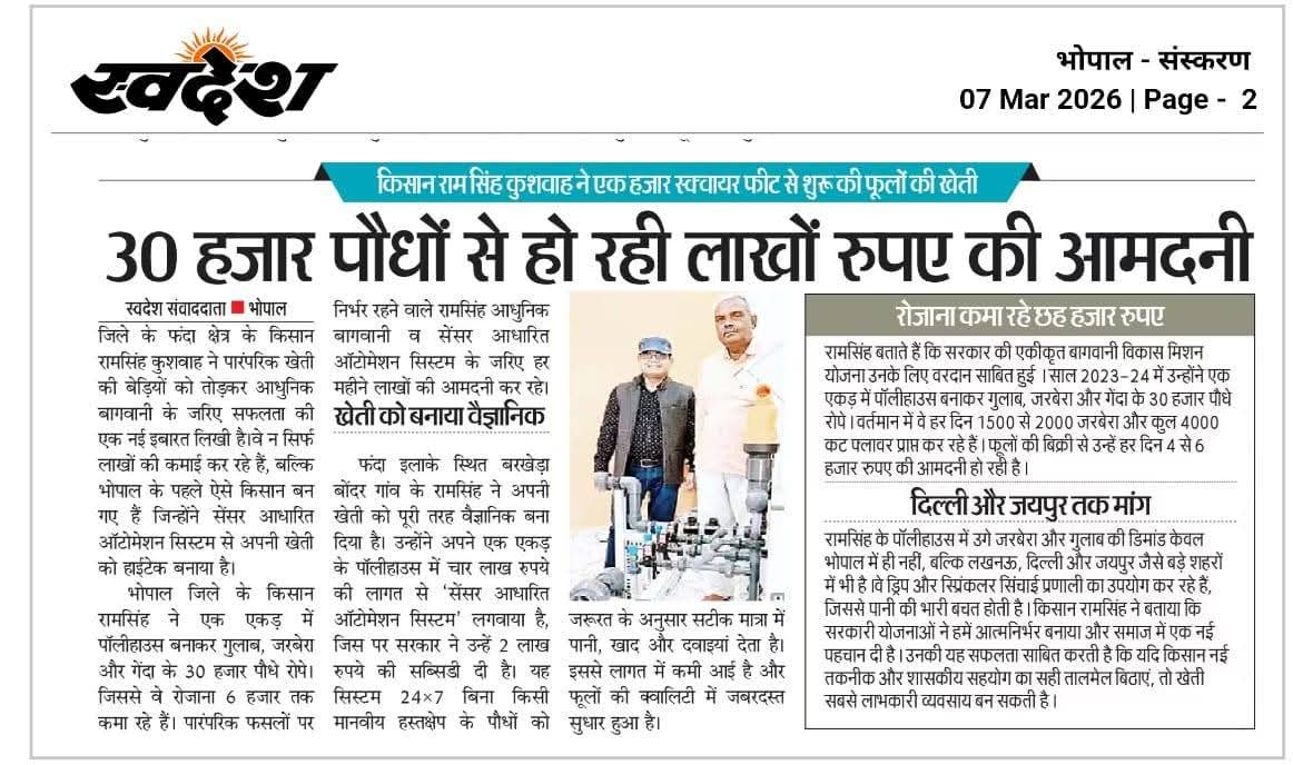 ऑटोमेशन सिस्टम से फूलों की खेती करने वाले भोपाल के पहले किसान हैं श्री रामसिंह कुशवाह