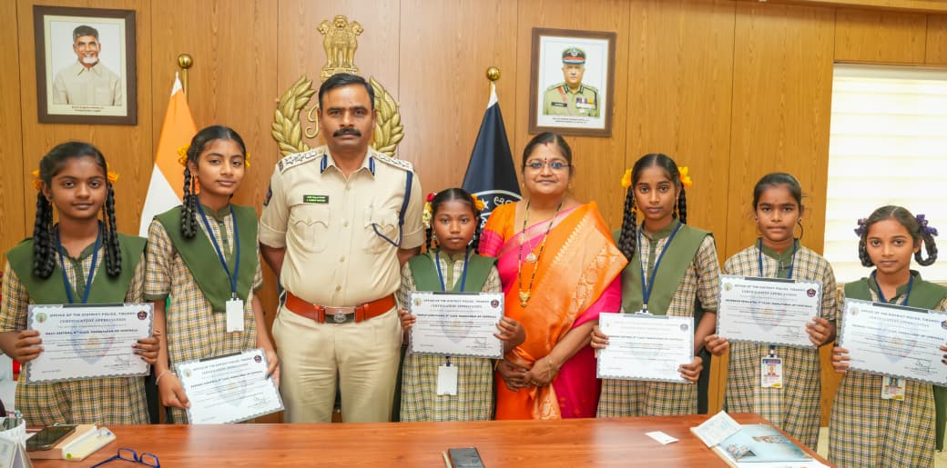 - చిన్న వయసులోనే గొప్ప నిజాయితీని చాటిన విద్యార్థినులను అభినందించి ప్రశంసాపత్రాలు, పుస్తకాలు మరియు నగదు బహుమతి అందజేసిన జిల్లా ఎస్పీ శ్రీ ఎల్. సుబ్బరాయుడు, ఐపీఎస్., గారు.